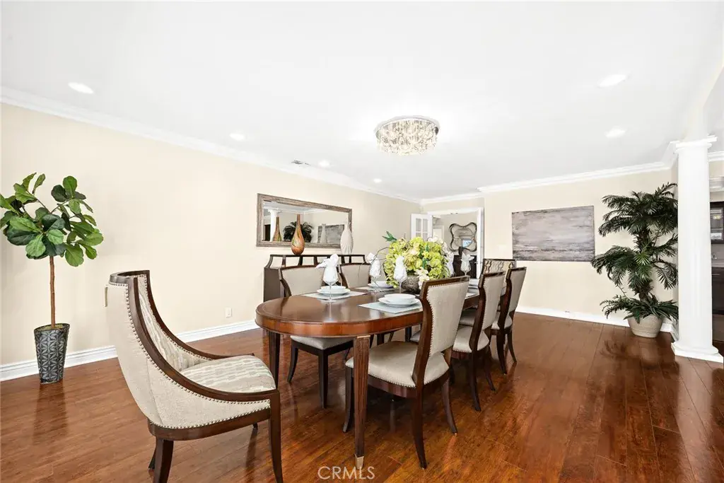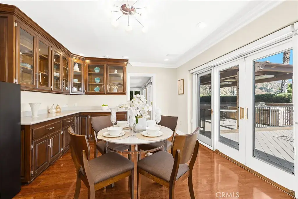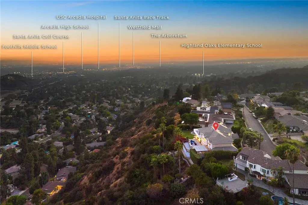 This spectacular view home, nestled in Arcadia’s highly desirable Highland Oaks neighborhood, is part of the prestigious Arcadia School District and exemplifies Southern California living with expansive panoramic views of the gardens, mountains and city lights. Situated on a hilltop, this beautifully updated estate offers the perfect combination of serenity, breathtaking views and privacy. As you approach the home you’re welcomed by a meticulously landscaped front yard and a paved circular driveway leading to an elegant entry. The artistry of marble inlay flooring graces the entry and living room, which seamlessly integrates indoor and outdoor spaces through walls of glass windows framing the stunning landscapes. The bright family room, with views of the pool and canyon, opens onto a large outdoor patio, perfect for entertaining. Anchored by two gas fireplaces, one in the living room and another in the family room, this home exudes warmth and comfort. The formal dining room and breakfast room, both featuring walls of glass, continue showcasing gorgeous scenic canyon views. Additional features include a large recreation room and beautiful wood floors throughout the living areas, enhancing the home’s natural charm. Originally built in 1959 then rebuilt in 1991, this expansive 6,103 sq. ft. estate offers 8 bedrooms, 7.5 bathrooms, with 5 en-suite bedrooms upstairs and 1 en-suite downstairs. The primary suite elevates luxury with a fireplace, direct access to a sun-deck patio, two large walk-in closets, and a spa-like bathroom with a soaking tub offering incredible canyon views. The home is thoughtfully designed for entertaining and enjoying the surrounding garden and pool. Details like crown moldings, recessed lighting, elegant granite finishes, vaulted ceilings in the foyer and well-placed windows capturing sweeping views to include the surrounding beauty as part of the home’s interior demonstrate the attention to detail and design throughout the estate. The professionally landscaped backyard is an entertainer’s dream, featuring two covered patios, a fully-equipped outdoor BBQ kitchen, ample decking, a lush lawn, and an inviting pool and spa. This tranquil outdoor space is perfect for leisurely afternoons, gardening, or simply enjoying the beauty of nature in a serene setting. This home truly epitomizes sophisticated California indoor/outdoor living. Be sure to take your time exploring this hilltop gem, a true retreat from the everyday hustle and bustle.