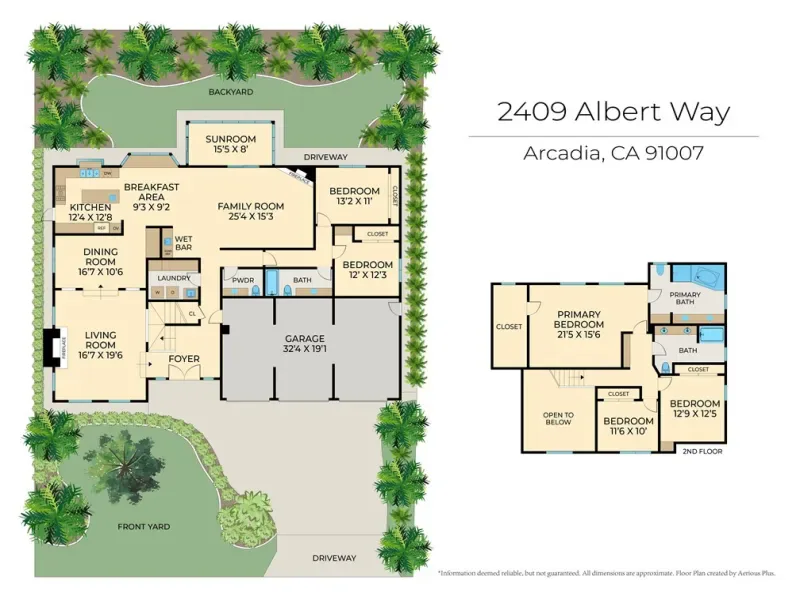 Arcadia Unified School District – Walking Distance to Longley Way Elementary. Located within the highly acclaimed Arcadia Unified School District, consistently ranked among the top in California and nationwide, this home offers access to award-winning schools known for academic excellence, outstanding test scores, and a 97% graduation rate. First time on the market in 25 years, this custom-built home by George Weagen (2000) has been meticulously maintained inside and out, showcasing true pride of ownership. From the beautifully cared-for landscaping to the well-preserved interior, this is a rare opportunity in today’s market. The home welcomes you with a grand double-door entry, soaring ceilings, and an abundance of natural light enhanced by dual pane windows throughout. Elegant details such as wainscoting panels, gorgeous moldings, detailed baseboards, wood shutters, and recessed lighting create a timeless and sophisticated atmosphere. Designed for both comfort and entertaining, the home features a formal living room and formal dining room, along with a spacious living room centered around one of two stone fireplaces. The thoughtfully designed layout also includes a bright breakfast area and a well-appointed kitchen with a center island, built-in stainless steel and black appliances, and seamless flow into the main living spaces. A wet bar and wine refrigerator further enhance the home’s entertaining appeal. The flexible floor plan offers 2 bedrooms and 1.5 bathrooms on the main level—ideal for guests, multigenerational living, or a home office. Upstairs, the expansive primary suite provides a private retreat with high ceilings, a spacious bathroom, and a large walk-in closet. Additional highlights include central heating and air, an indoor laundry room on the first floor with ample cabinet storage, a durable tile roof, and a spacious 3-car garage. Step outside to beautifully landscaped front and rear yards featuring a variety of flowers and fruit trees, along with a versatile bonus sunroom—perfect for relaxing, entertaining, or enjoying indoor-outdoor living.