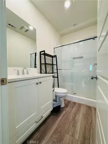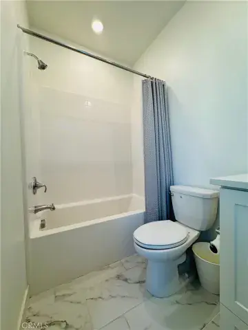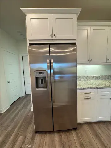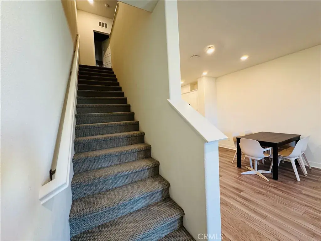 The second floor offers an open concept living space with a bright living room and dining area that opens to a private balcony ideal for relaxing or entertaining. The gourmet kitchen features a center island with granite countertops, stainless steel appliances, a refrigerator, dishwasher, and ample cabinet space. Also located on the second level is a secondary bedroom with a full bathroom, perfect for guests.