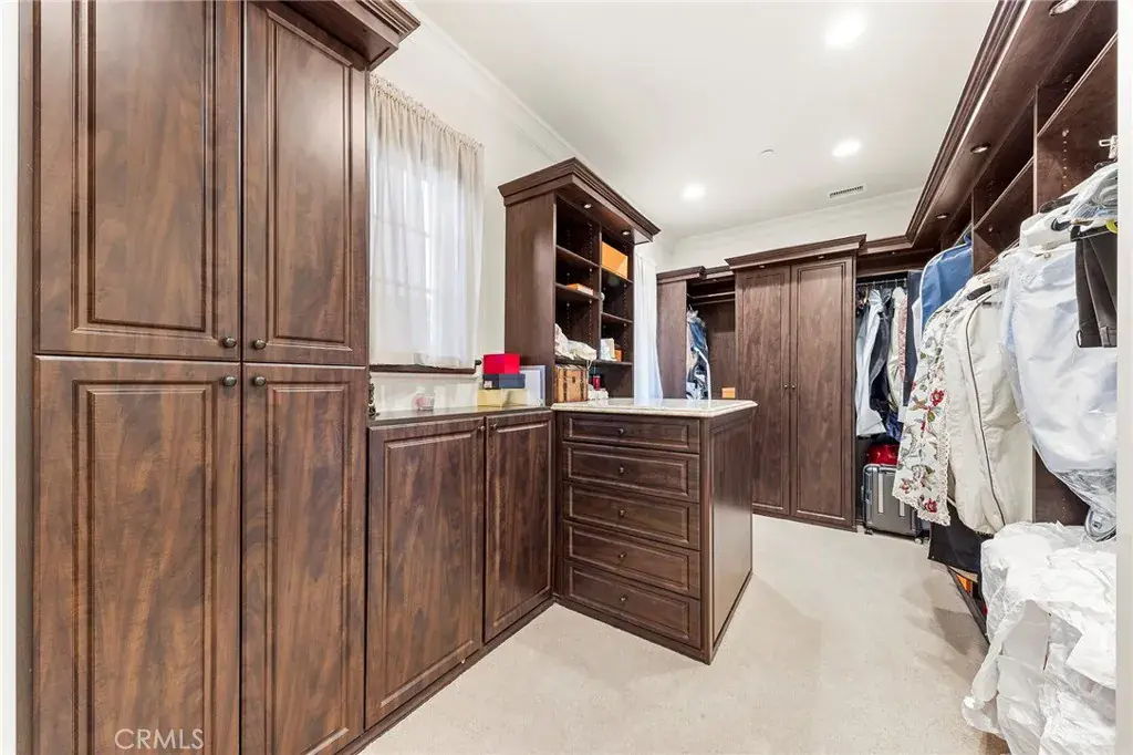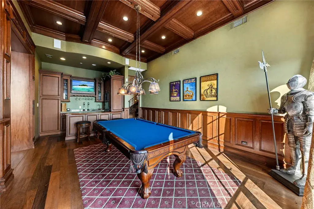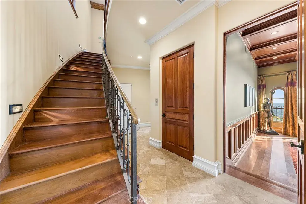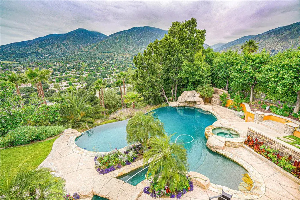 Outside, the resort-style backyard boasts an infinity-edge pool overlooking the scenic hills of Los Angeles—perfect for relaxation or entertaining under the stars. Additional features include a whole-house water softening system, surround sound speakers, intelligent lighting controls, and a four-car garage.