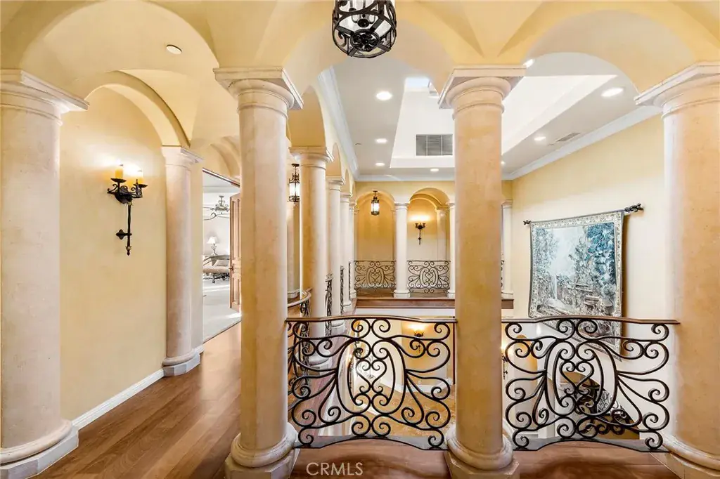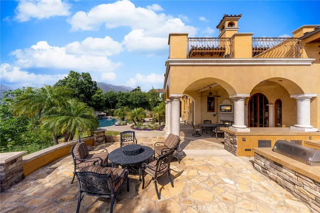 Positioned on a generous 1.02-acre lot (44,431 sq ft), this Mediterranean Revival estate was thoughtfully built in 2007 and spans 6,526 sq ft of refined living space. Gated and privately hedged, a charming Saltillo-tiled veranda leads to an impressive entry, unveiling a home rich in character and quality.