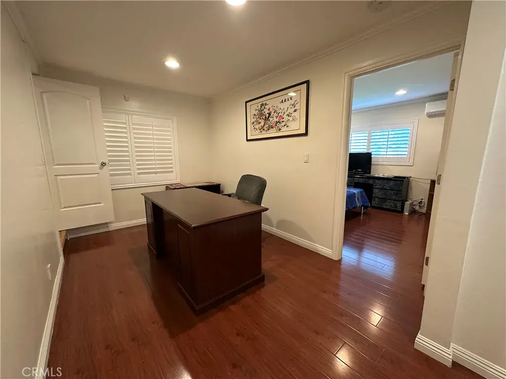 South facing well maintained cozy home located in a quiet neighborhood. 4 bedrooms 4 bath with 3 suites. Huge upstairs Master bedroom has its own privacy. Central AC and wall unit in each bedroom. Adjacent family Room and living room, formal dining room and breakfast area in kitchen, Office, hardwood floors. Enclosed patio with extra space for leisure time and kids playing. Lots of fruit trees in back yard, 2 car attached garage with plenty parking in driveway. Short distance to elementary school.