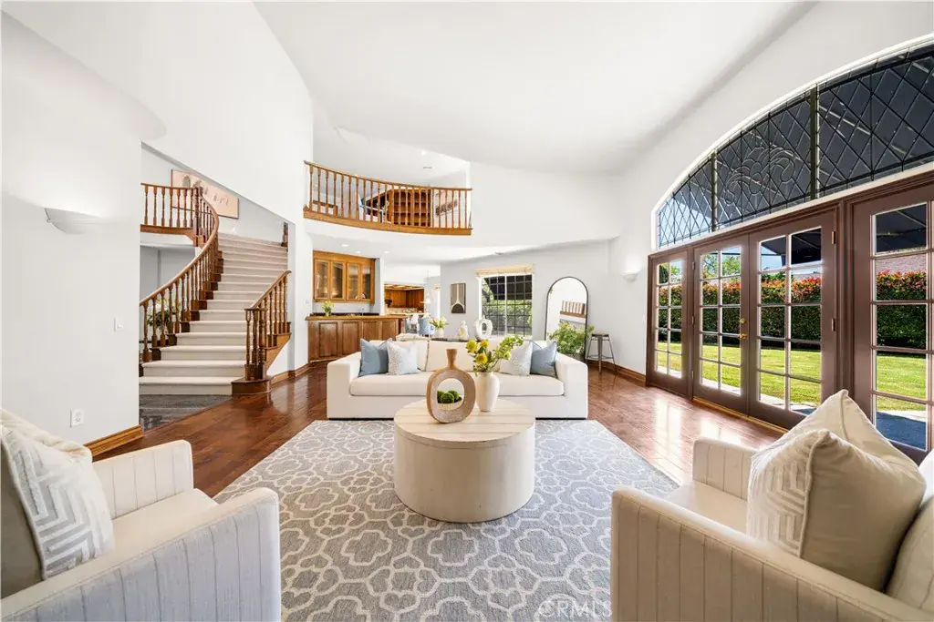 Stunning 5,500 Sq. Ft. Executive Home in Arcadia. This grand 5,500 square-foot home, built by Murisol Builders, is a stunning 4-bedroom, 4-bath executive-style residence located on a quiet cul-de-sac in Arcadia, within the highly sought-after Arcadia School District. The home features a spacious library with a nearby full bath and closet, making it a potential fifth bedroom for visiting guests or a fabulous professional office. The oversized family room, with soaring 20-foot ceilings, built-in cabinets, and shelving, offers a breathtaking view of the sparkling pool and spa. A beautiful wet bar enhances the space, making it an entertainer’s delight. The gourmet kitchen boasts a large island with a second sink, a breakfast bar, and an open layout that seamlessly connects to the informal breakfast area and family room. For more formal gatherings, the elegant living room with a fireplace and the separate dining room provide the perfect setting, with convenient access for serving. Ascending the dramatic circular staircase, you’ll find two spacious bedrooms sharing a full bath, along with the luxurious master suite. The master suite features a private balcony overlooking the pool and spa, a lavish en-suite bath, and an impressively large walk-in closet. Additionally, there is an upstairs loft area ideal for a second family room. Downstairs, the fourth bedroom and third bath offer direct access to the pool area, while the well-appointed laundry room provides ample storage and space for a side-by-side washer and dryer. The home also includes a three-car garage with additional space for a workshop. The beautifully designed pool and spa complete this remarkable home, providing the perfect place to relax and entertain. This spacious and elegant residence is truly a rare find!