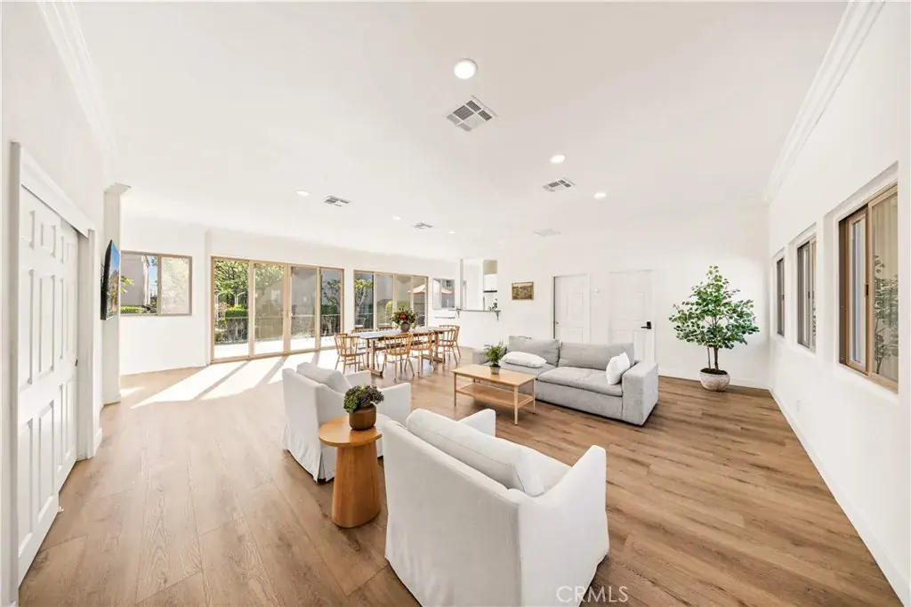 In the heart of Arcadia, the long favored by established residents for its balance of convenience, education, and lifestyle, this residence offers a rare blend of architectural comfort and everyday sophistication. The city is known for its top-tier school district, abundant Asian markets, diverse dining scene, and seamless access to major corridors, creating a setting where quality of life and practicality intersect naturally. The home itself spans approximately 1,842 square feet and is thoughtfully designed with three private suites plus a guest powder room, ideal for modern living and long-term flexibility. Upon entry, the living area immediately impresses with soaring ceilings and an abundance of natural light, creating a sense of openness and calm. A full renovation completed in 2017 elevated the interior with new hardwood flooring, dual-pane windows and sliding doors, a redesigned kitchen, and updated bathrooms, newer HVAC system, delivering both aesthetic refinement and functional efficiency. What distinguishes this residence is its exceptional flow and connection to outdoor space. The layout is bright, airy, and intuitive, with multiple skylights placed throughout the home, allowing sunlight to filter in from every angle and creating a tranquil, healing atmosphere. The front courtyard and two of the suites extend directly to balconies and exterior areas, seamlessly blending indoor and outdoor living. From the private rooftop, one can enjoy elevated views of the surrounding community and distant mountain lines—an inviting retreat for morning coffee, sunset reflections, or quiet evenings under the sky. Each suite is well-proportioned, offering privacy, comfort, and versatility for family members, guests, or home office needs. The home’s transparency, ceiling height, and intelligent configuration enhance both daily living and long-term value. Set within a peaceful corner of the community, the property benefits from exceptional privacy and lush landscaping, surrounded by mature trees and greenery. Residents enjoy access to a resort-style pool and clubhouse, further enhancing the lifestyle experience. The environment is calm, refined, and beautifully maintained—an ideal complement to the elegance of the home itself. This is not simply a place to live, but a thoughtfully curated setting where light, space, and location come together in one of Arcadia’s most enduringly desirable environments.
