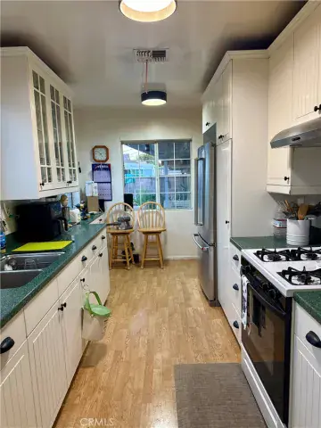 Welcome Home! Your Perfect Blend of Comfort, Style & Convenience Awaits! Step into this beautifully updated 3-bedroom, 2-bathroom home located in a desirable, central neighborhood close to schools, shopping, and major freeways — perfect for both relaxation and accessibility. From the moment you arrive, you’ll love the fully fenced property featuring an automatic gate opener, pedestrian entrance, and a gate doorbell to welcome guests and deliveries. Parking is never an issue with a spacious two-car garage, long driveway, and ample street parking for family and friends. Inside, the charm continues with gleaming hardwood floors, a bright open-concept living and dining area, and a split-bedroom floor plan that provides ideal privacy for all. The updated modern kitchen boasts white cabinetry, a breakfast bar, and a brand-new stove, making it the perfect space to cook, chat, and entertain.