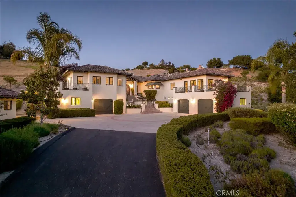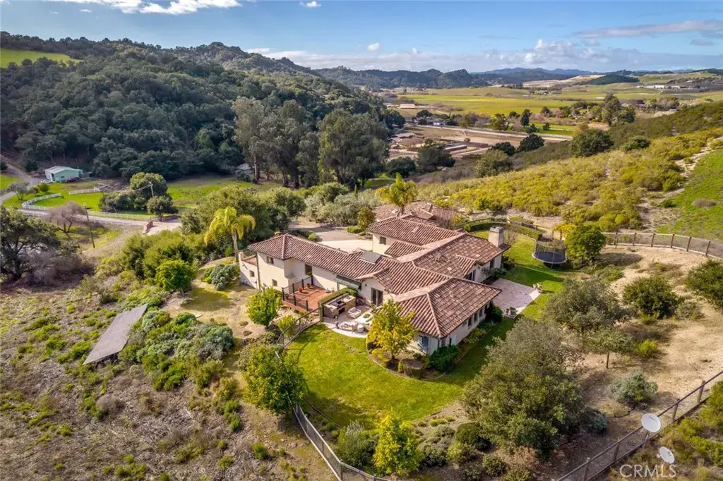 Welcome to your oasis in the heart of Corbett Canyon wine country in Edna Valley. Spanning 7 acres of breathtaking vistas, this estate offers a blend of luxury, privacy, and natural beauty. This gated property, featuring a tree lined entry along a private road. The property features main home with detached guest home, with the main residence showcasing approx. 3,250 sq. ft. of exquisite custom craftsmanship. As you approach the main house, you’re immediately struck by the serene surroundings. Step inside to be greeted by a light-filled living area with soaring wood-beam ceilings and panoramic views from every window, creating an ambiance of warmth and openness. The centerpiece fireplace invites you to relax and soak in the tranquility. The dining area, designed for memorable family gatherings, flows seamlessly into a chef’s dream kitchen. Skylights illuminate with high-end appliances, a custom refrigerator, and extensive counter and cabinet space, all complemented by an island with a utility sink that opens to an additional dining area. The home features a secluded office at the far end of the house, complete with a balcony. Take a break from work and savor the serene landscape that surrounds you. The master suite is a sanctuary of comfort, featuring windows that frame the surrounding beauty, a walk-in shower, and a separate soaking tub in the luxurious ensuite. Two additional spacious bedrooms on the opposite side of the home offers privacy for family or guests. The 3-car garage downstairs also includes a wine cellar, for the wine connoisseur. The guest house, approximately 1,250 sq. ft., boasts 1 bedroom and 2 bath, with high wood-beam ceilings that create an airy, inviting space. It’s an ideal retreat for visitors or an excellent opportunity for rental income. The outdoor spaces are equally captivating, with 70 olive trees enhancing the estate’s charm. Flagstone patios, a built-in fire pit, and a BBQ area offer the perfect settings for entertaining or unwinding while taking in the stunning sunsets. Despite the sense of seclusion and complete privacy, you’re never far from the best of the Central Coast. Renowned destinations like Pismo Beach, Shell Beach, AG Village, and San Luis Obispo are just a short drive away. This estate is more than a home; it’s a lifestyle, blending serene, private living with the convenience of nearby attractions. Experience the epitome of California living in this exceptional Corbett Canyon estate.