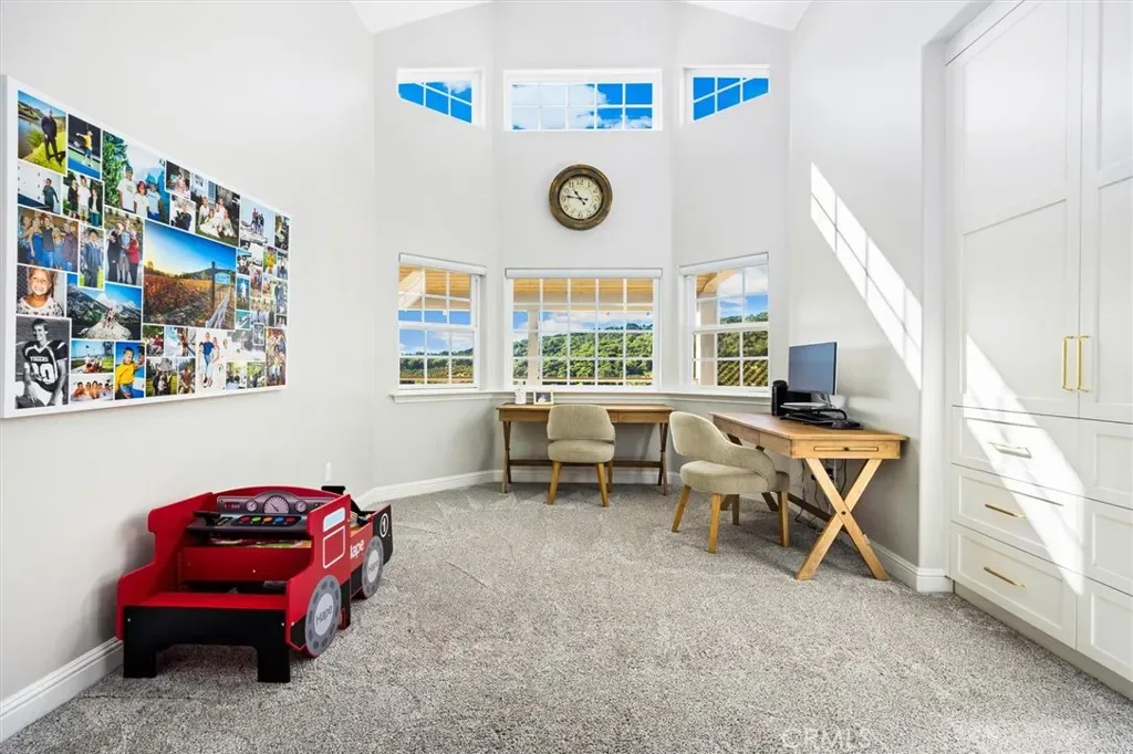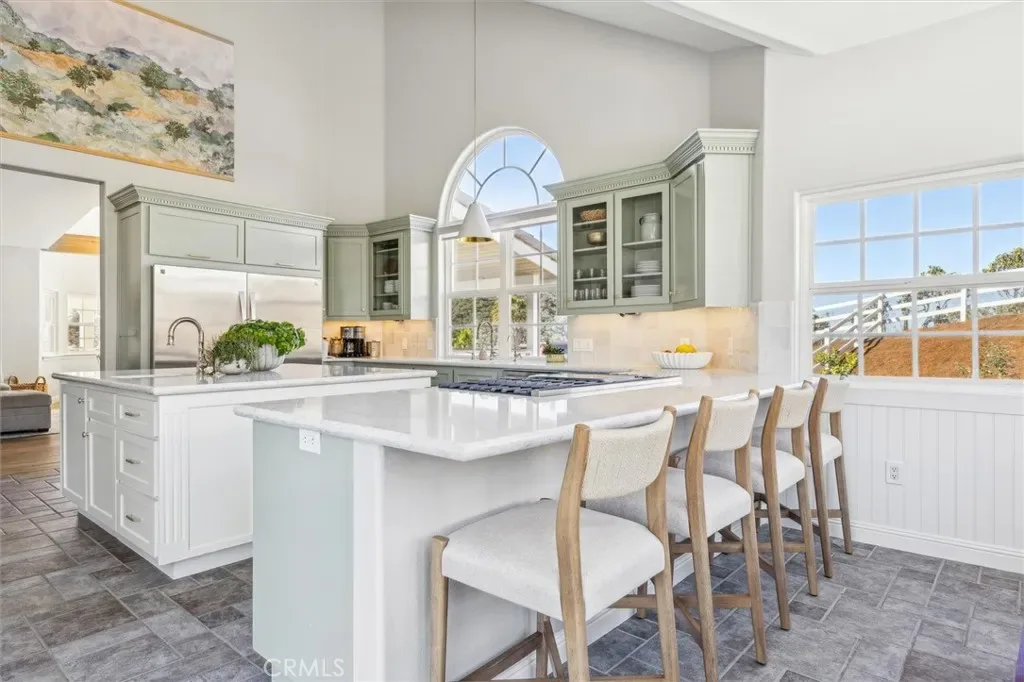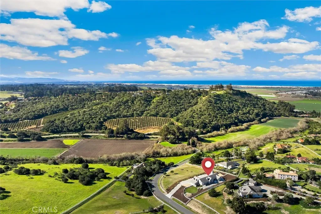 Nestled within the gated community of Falcon Ridge Estates in Arroyo Grande, 172 Falcon Crest Drive is perched atop a recently landscaped 2.65 acre lot and overlooks a lush valley and glimmers of the Pacific Ocean in the distance.