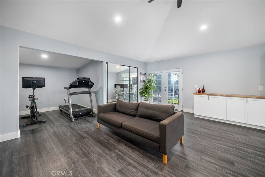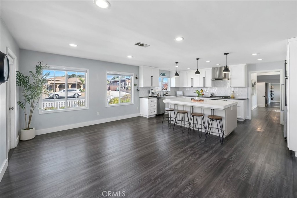 The home offers approximately 2,400 square feet with 4 bedrooms and 3 bathrooms. The entry opens to a modernized kitchen, living, and dining area anchored by an expansive island. The layout transitions from a formal front living room into a large flex space currently used as a home office, music, art, and workout studio. Light-filled interiors prioritize comfort, usability, and long-term livability over passing trends. Additional details regarding improvements and upgrades are available in the MLS supplemental section or by request.