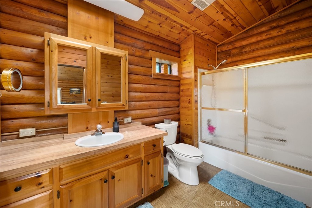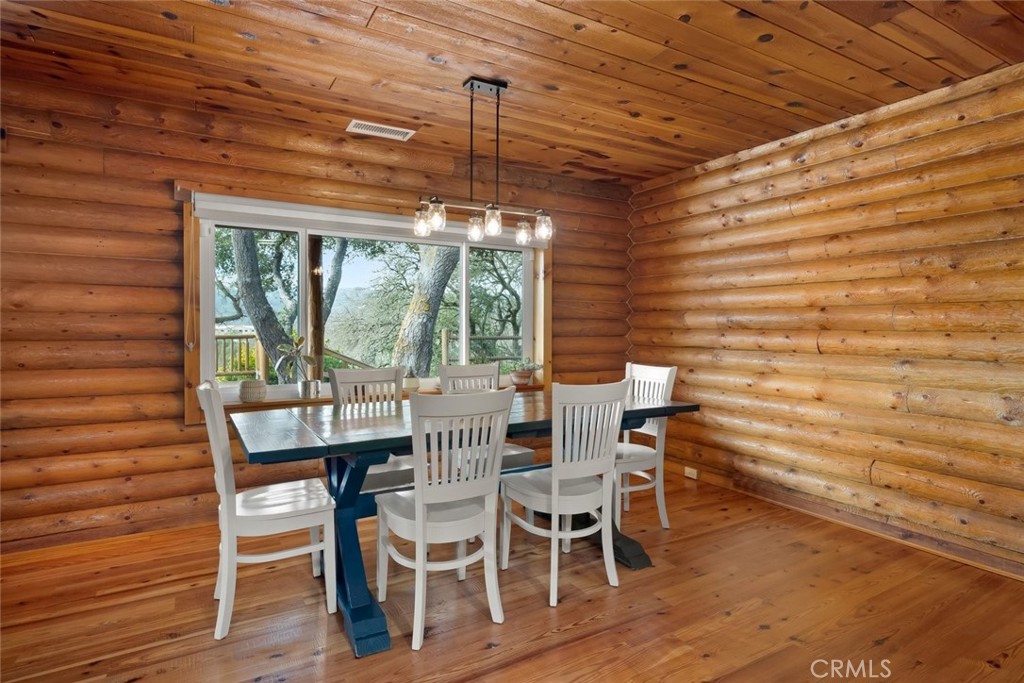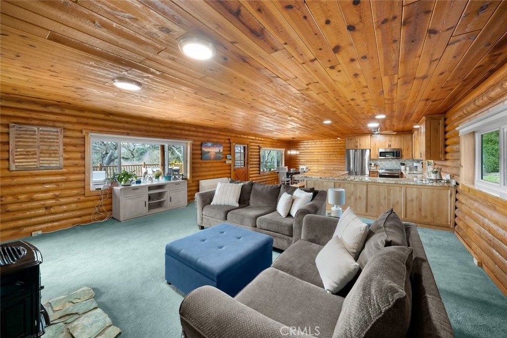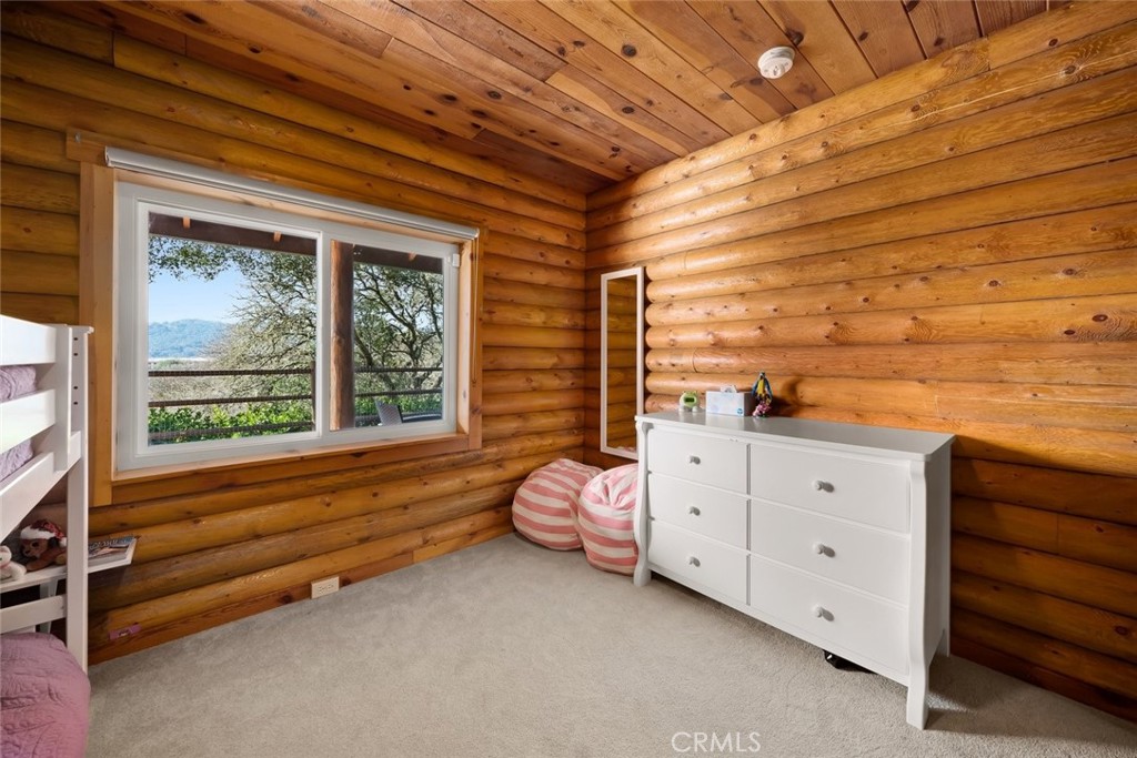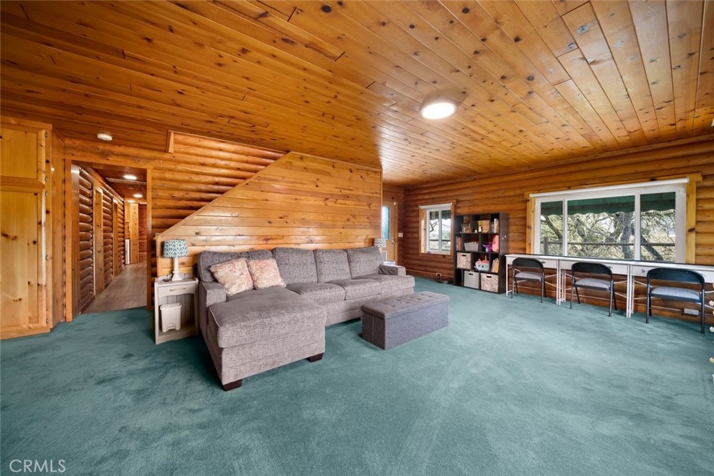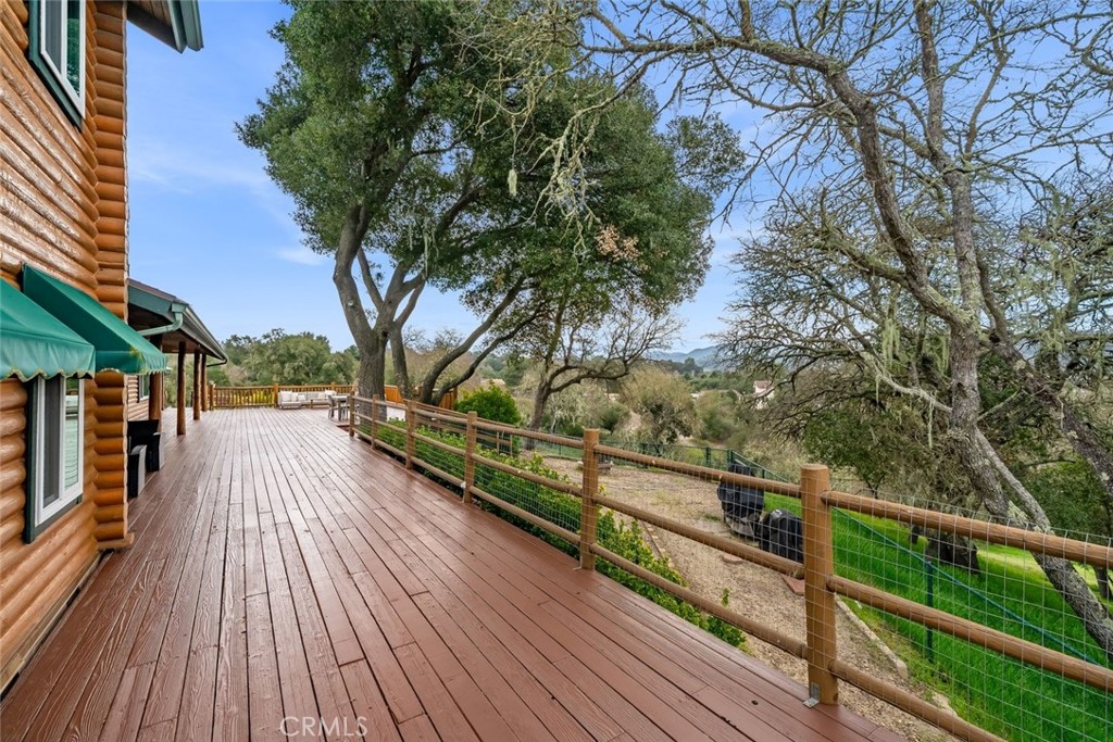 Tucked among majestic oak trees with sweeping panoramic views, this rare true log home feels like a mountain getaway yet it’s right here in Atascadero. Crafted entirely of logs inside and out, the home radiates warmth, character & a kind of cozy charm you simply can’t replicate. The main living area is designed for connection & comfort, with a beautifully updated kitchen featuring granite countertops, an oversized bar perfect for gathering, and seamless flow into the dining & living areas. A pellet stove anchors the living room, creating an inviting space for relaxed evenings and cool-weather ambiance. Downstairs offers two bedrooms and two full baths, along with a spacious secondary family room; ideal as a media room, play room, gym, or guest retreat, complete with abundant built-in storage. A separate indoor laundry room adds to everyday convenience. The primary suite occupies the entire upper level, offering a peaceful & private escape with treetop views; feels like your own private sanctuary. Step outside onto the expansive deck and take in the breathtaking scenery, where oak-studded hills, vegetable gardens, and fresh air create a true sense of retreat. Additional highlights include a detached two-car garage with a brand-new garage door, EV charger, owned solar, new A/C, new dual-pane windows throughout, multiple storage sheds and thoughtful updates that blend modern efficiency with original charm. This is more than a home, it’s a lifestyle. Cozy, charming & unique, this magical log cabin offers the feeling of being on vacation every single day.