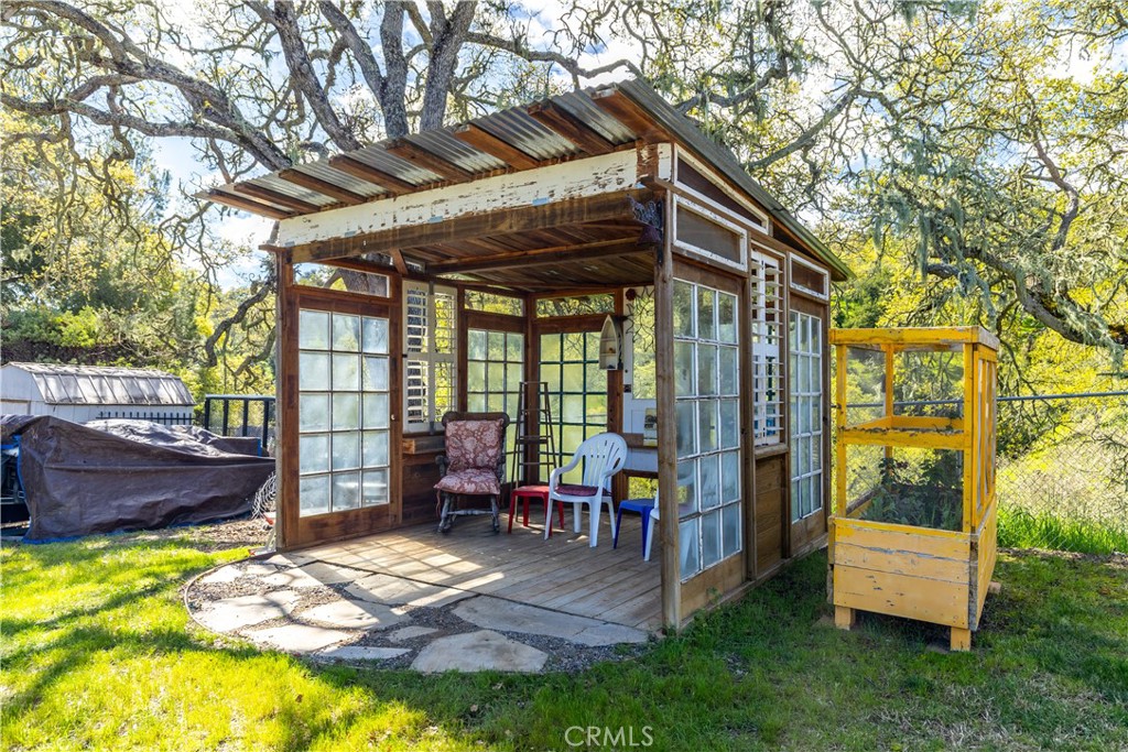 Inside, the home blends comfort and efficiency with a recently remodeled kitchen showcasing quartz countertops and opening to a large living room with a cozy wood-burning fireplace. Over the past decade, improvements include a new roof, wraparound decking, updated flooring, new doors, Milgard windows, Hardie siding, a recently replaced HVAC system and an updated primary bathroom. An owned solar system serves the main home – with typical electric bills under $10 per month. While connected to the grid, the property also offers LG battery backup and generator wiring for added peace of mind. Additional highlights include an owned LifeSource water treatment system and a charming reclaimed lumber she-shed, perfect for a studio or peaceful backyard retreat.