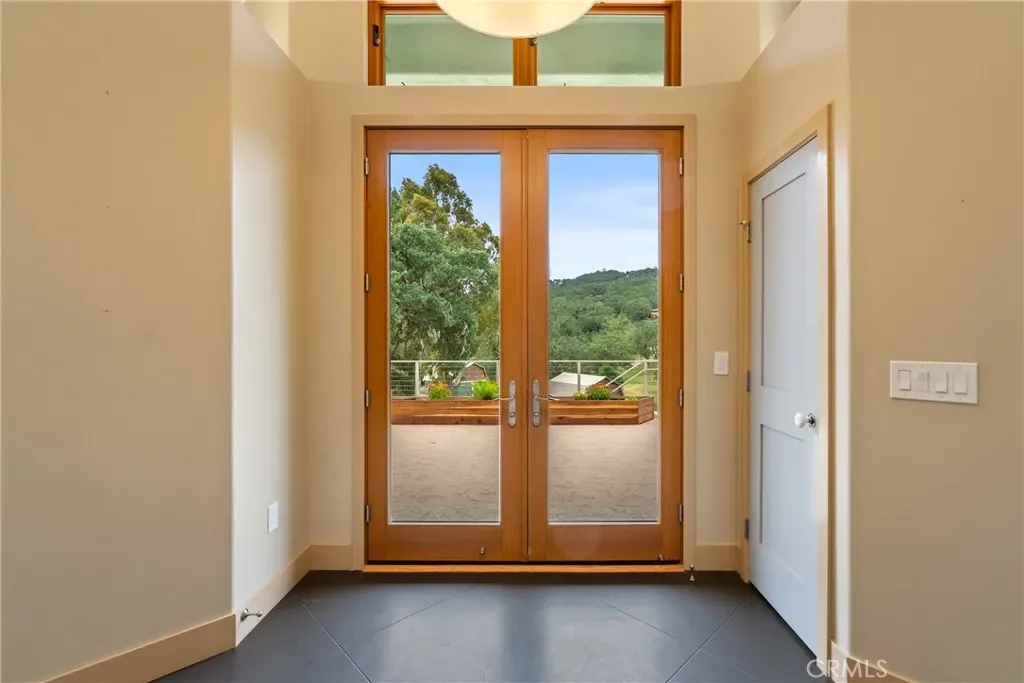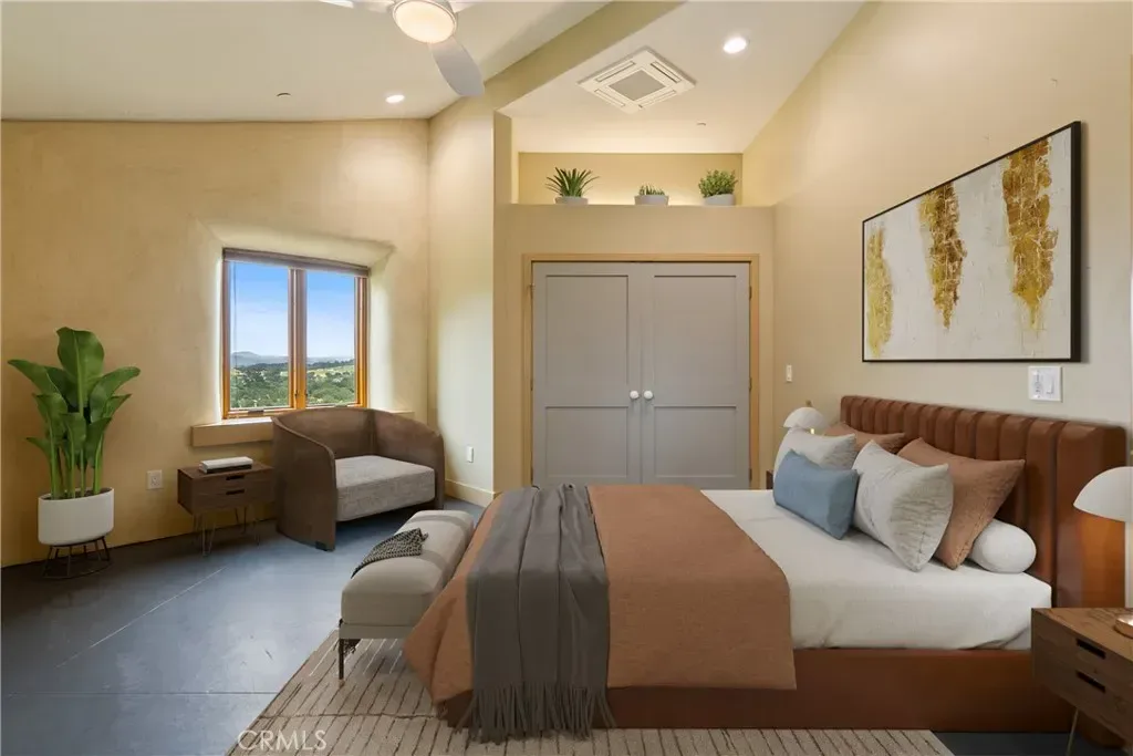 Discover the unique charm of 8140 Castenada Lane, a newly built, single-level home in Atascadero with straw-built walls on 2 sides for energy efficiency and design. This 1977 sf, 2-bedroom, 1.5-bathroom residence was thoughtfully designed to blend seamlessly with the picturesque ~4.19 acre landscape that surrounds it. Style greets you from every approach—whether you ascend the front steps or drive up to the back door. Completed in 2022, the home is equipped with a modern heat pump/split system and fire sprinklers, ensuring comfort and safety. Parking is available in the generous 1-car garage located beneath the main living area with additional parking available on the spacious grounds. Inside, the home boasts high ceilings and concrete floors throughout reinforcing its one-of-a-kind status. Enter through the double glass doors into a large living room anchored by a Venetian plastered wall and illuminated by large windows with transoms. A unique feature is the cleverly hidden bookshelf that opens with a gentle push to reveal extra storage plus a built-in entertainment console. The modern kitchen features all-electric appliances, lovely wooden cabinetry with custom pull out shelves, and paper stone countertops complemented by a butcher block breakfast bar. The sleeping quarters include a large primary bedroom with sweeping window views and a private half bath. The second bedroom offers a clever peek-a-boo insert showcasing the home’s partial straw-built construction. Separating the bedrooms is a roomy main bathroom with a double sink matching the kitchen’s elevated paper stone counters and wood cabinetry. Outdoors, the property offers significant potential with two separate barns. The larger barn is ~674 SF, and the second is ~480 SF. These structures are yearning to be finished into additional living space easily satisfying a desire for generational living or potential income generation (contact the City of Atascadero for full permitting details). With the placement away from the main home, it ensures everyone enjoys needed privacy. This unique property offers a secluded retreat, sweeping views, yet it is only minutes away from the shopping, dining and entertainment you desire. Call today to schedule a viewing. Please view the Virtual Tour for additional information.