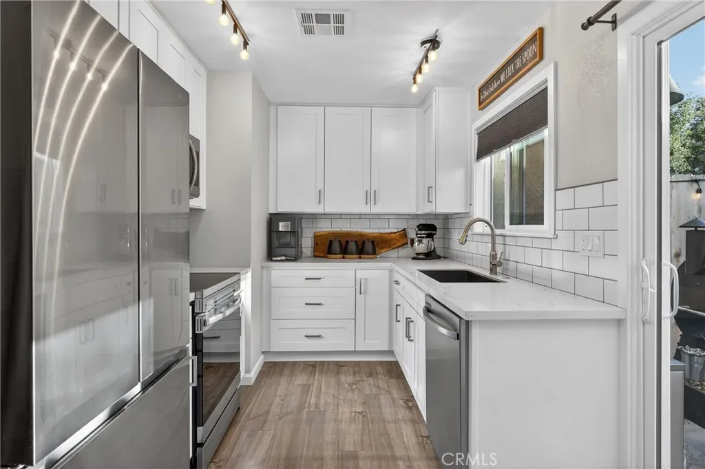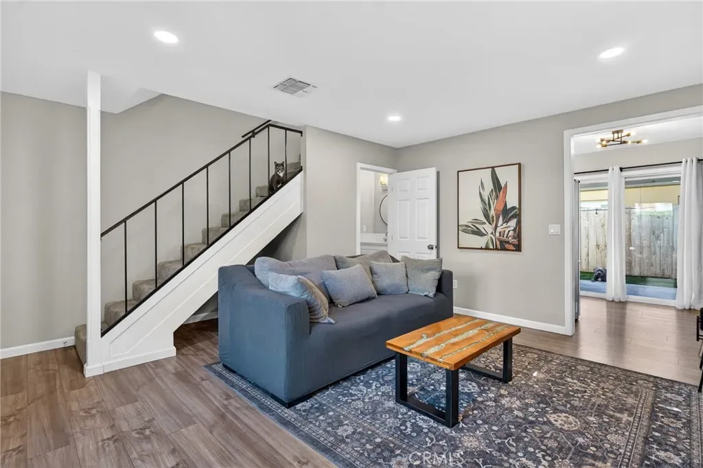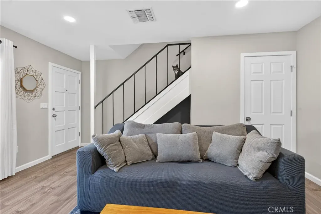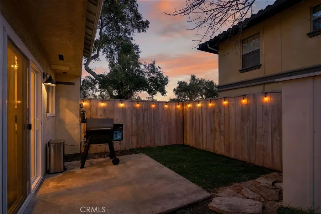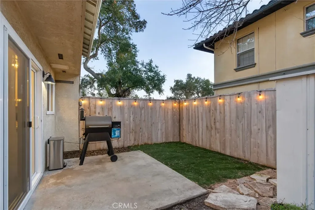 Welcome to 9780 Las Lomas #7 in Atascadero — a thoughtfully upgraded 2-bedroom, 2-bathroom home tucked into the quiet back corner of an intimate community, offering rare privacy with only one shared wall and peaceful greenbelt views from the living room and primary bedroom. Extensively improved with both style and substance, major updates include central heating and air (installed 2022, serviced 2024), dual-pane vinyl windows and sliding door, updated plumbing, new plugs and switches, a new roof in 2024, and full fumigation completed in 2025 — providing confidence for years to come. Natural light fills the open living space, enhanced by recessed lighting and modern finishes. The kitchen shines with white shaker cabinetry featuring soft-close doors and drawers, quartz countertops, a black granite sink, designer backsplash, stainless steel Samsung appliances, custom pantries, and a charming coffee bar for added storage and functionality. Upstairs, two generously sized bedrooms offer remote-controlled ceiling fans, mirrored closet doors, and blackout shades. A Nest thermostat adds smart-home convenience. The primary bathroom is beautifully renovated with an oversized soaking tub, tiled shower surround, updated exhaust fan with integrated light, and contemporary fixtures. A second bathroom provides flexibility for guests or everyday living. Outdoor space is equally impressive. One of the larger lots in the community, the property features four front flower beds, a newly added gate, and a private wraparound yard with low-maintenance turf. A storage shed is included, and Edison string lighting creates a warm setting for relaxing or entertaining. Additional conveniences include remote-controlled blinds throughout (excluding the kitchen), two assigned parking spaces (one standard, one parallel), and a nearby communal laundry facility with three washers and three dryers offering both app and coin operation (approximately 29-minute wash and 45-minute dry cycles; usage fees apply). The HOA, approximately $500/month as of January, covers water, trash, sewer, exterior maintenance (roof, fencing, gutters, pest control and tenting if needed), landscaping, exterior insurance, and monthly cleaning of the laundry facility — allowing for low-maintenance living. Private, extensively upgraded, and thoughtfully maintained — this is a rare opportunity to own a beautifully improved home in a desirable Atascadero location.