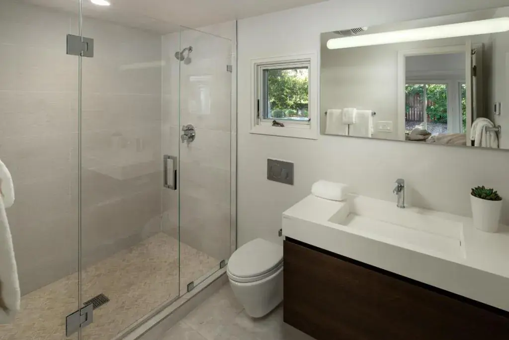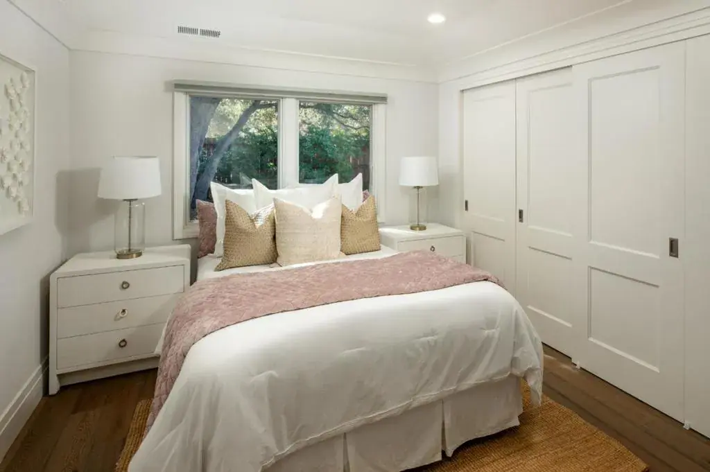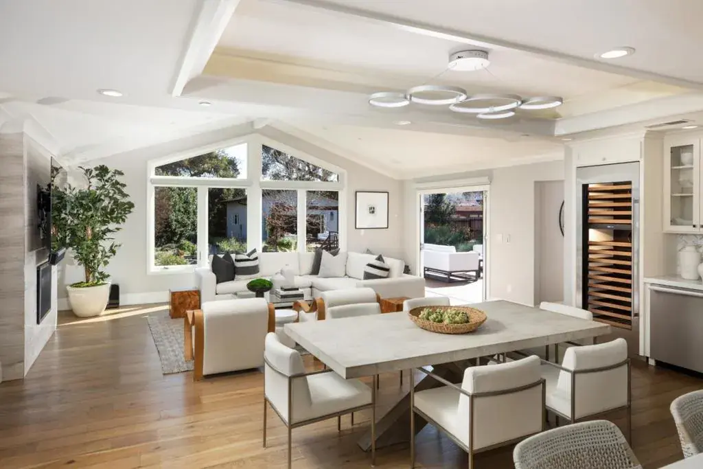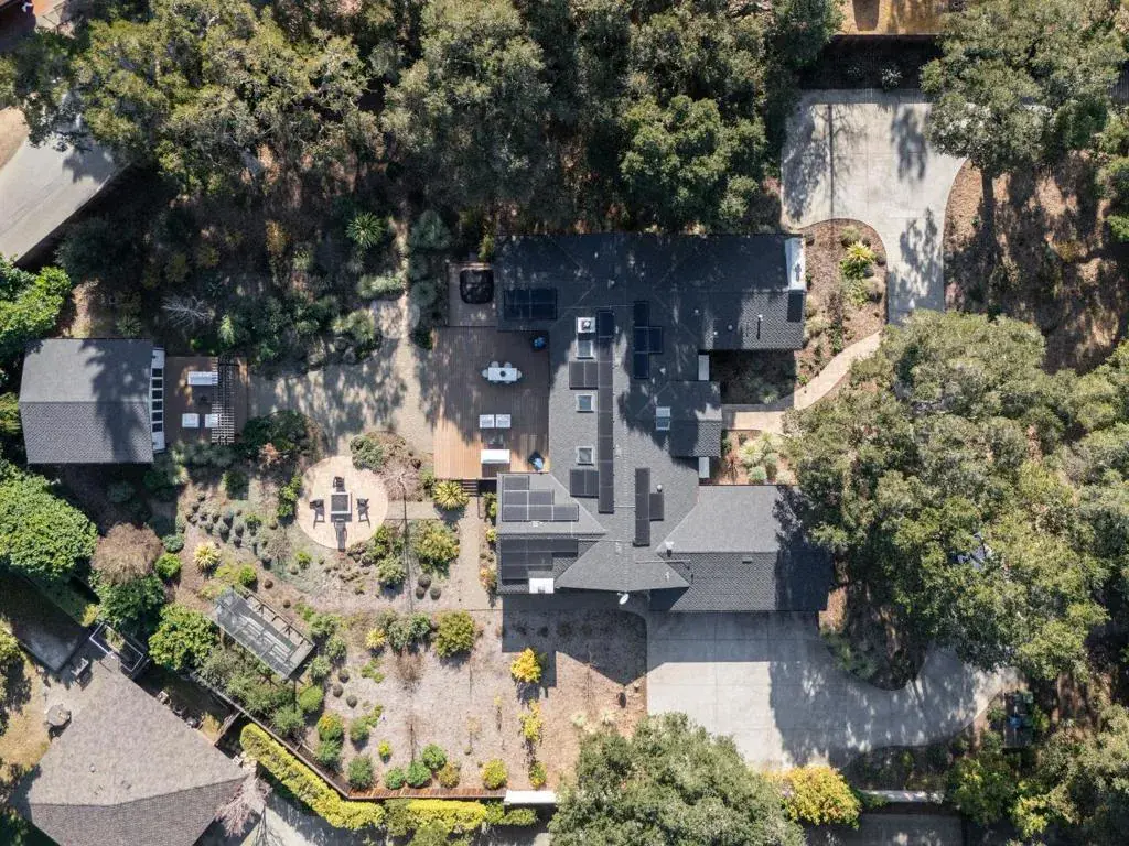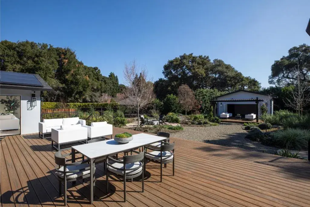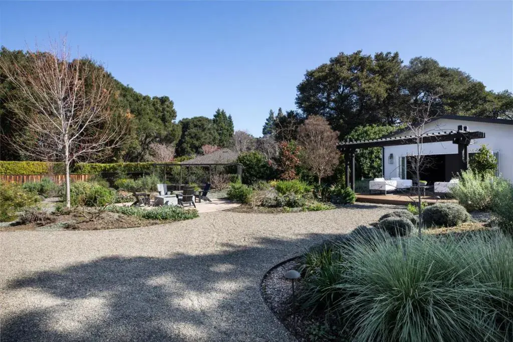 Extensively remodeled and positioned on a beautiful level lot of one acre, this home is solar-powered with an expansive one-level floor plan. There are 4 bedrooms, a dedicated office, 3.5 baths, plus a detached studio currently used for a sports simulator and also ideal for additional office space if needed. Every inch of the home is bright and light with numerous sets of fully retractable glass doors, many skylights, a soft neutral palette, and white oak floors. A spacious living and dining room combination awaits formal gatherings while the gourmet all-white kitchen and adjoining family room stand ready for everyday enjoyment. The primary suite is a luxurious retreat complemented by two bedrooms and a hallway bath plus there is a second suite perfect for guests. Tying it all together are vast low maintenance grounds with an expansive deck and spa, a fire pit terrace, along with a vegetable garden and fruit trees. The finishing touch includes a location less than one-half mile from downtown Menlo Park and access to excellent local schools.