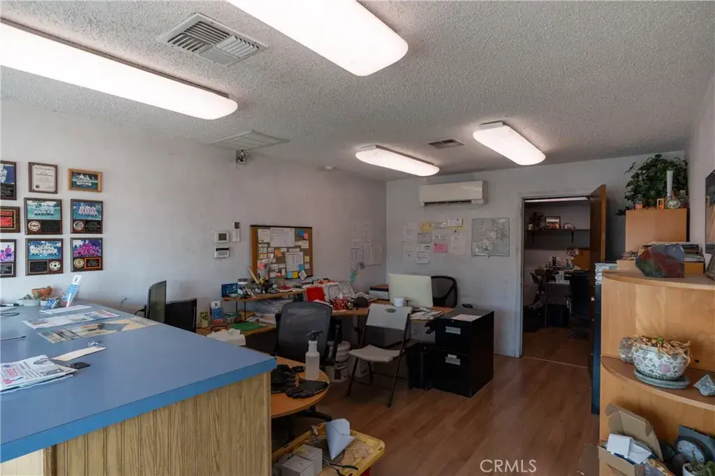 Prime Commercial Building on a 17,781 sq. ft. lot offering excellent visibility, accessibility, and functionality. The property features a welcoming front reception area with a separate entrance, a private office with a kitchenette, laminated flooring, and a ½ bathroom. The shop area is designed for versatility with three 14-foot bay doors, 16-foot clear height ceilings, and skylights in two bays, totaling approximately 4,996 sq. ft.