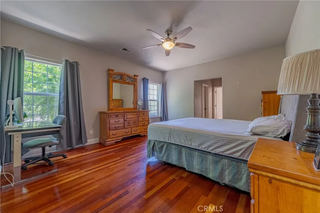 Two Homes & Studio Apartment in garage on about 29 acres of 13 year old Almond Ranch. Main home is a beautiful custom home, 5 bedrooms, 5 1/2 baths and 4145 square feet of living space. Most bedrooms have their own private bathrooms. Separate living, family and dining room. An additional nook in kitchen. Cherry Cabinets with Marble Counters, Stainless Steel appliances and 5 burner gas stove. Cherry flooring upstairs and downstairs. Some 19 foot high ceilings, crown molding, Master Bath has dual closets, jetted tub and tile flooring. House has much more. Large Circular Concrete Driveway. Large covered patio adjacent to 1 bed, 1bath 900 square foot Granny House. 48 x 25 foot shop with power.