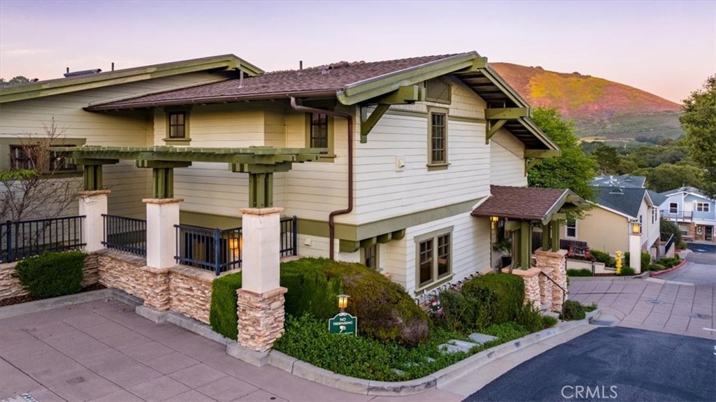 Welcome to serene coastal living in the heart of Avila Beach. Ideally located just moments from the sand, boutique shops, restaurants, and the Avila Beach Golf Resort, this beautifully constructed home offers privacy, comfort, and an exceptional Central Coast lifestyle within the highly sought-after Ocean Oaks community. Perched atop a hill, only four blocks to the heart of downtown Avila Beach. This well crafted, end unit features luxurious construction and thoughtfully designed floor plan, features soaring ceilings in the living room, abundant natural light, and picturesque hillside views. The inviting living area is centered around a gas fireplace and flows seamlessly into the dining area and kitchen, creating an open and welcoming space for both everyday living and entertaining. The home features two private outdoor living spaces, including a front deck with tremendous hillside views, great sun exposure and a private rear patio, perfect for enjoying the fresh coastal air and peaceful surroundings. Upstairs, the loft-style primary suite overlooks the main living area and provides a comfortable retreat with generous space, a well-appointed bathroom, and ample storage. Additional highlights include central air conditioning, a tandem two-car attached garage, and a convenient 3/4 bathroom located near the garage, ideal for cleaning up after a day at Avila Beach, golfing at the nearby course, or exploring one of the many scenic hiking trails throughout California’s Central Coast. Residents enjoy beautifully maintained grounds and access to a private courtyard featuring lush landscaping, a generous spa meets splash pool, perfect for soaking up cozy winter warmth or floating away summer afternoons and relaxing with a tranquil water feature. Whether you are searching for a full-time coastal residence, weekend getaway, or investment opportunity, this Avila Beach property offers the perfect blend of location, lifestyle, and comfort just minutes from the shoreline.
