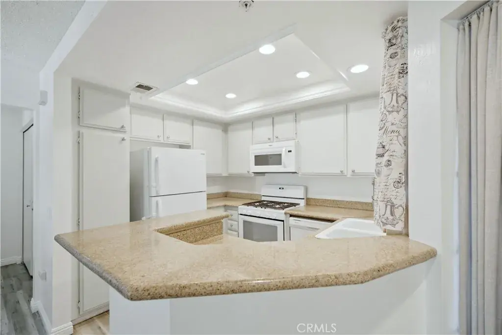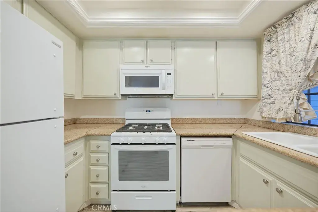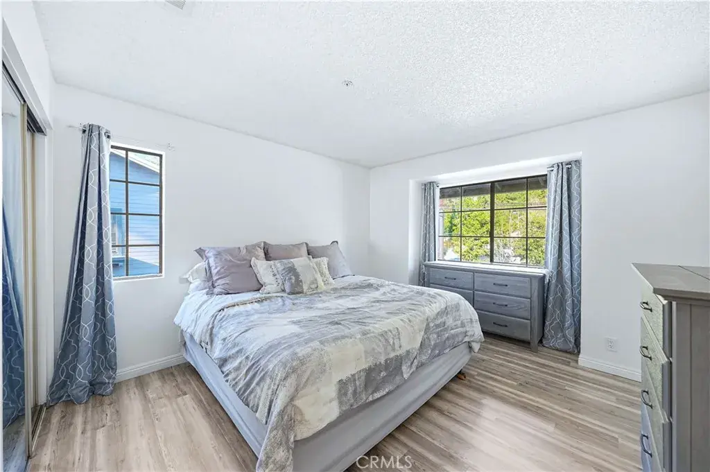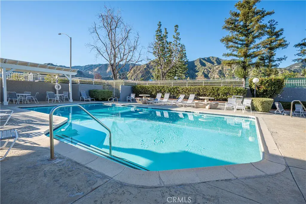 Located at the base of the San Gabriel Mountains, this upper-level 2-bedroom, 2-bath condo offers 1,085 sq ft in the Crystal Canyon community. Positioned on the second story in a cul-de-sac setting, the home features a single-level layout with vaulted ceilings in the main living area and wood-look plank flooring throughout. The open living and dining area includes recessed lighting and sliding glass door access to a private covered balcony with mountain and foothill views. The balcony is accessible from both the living room and the primary bedroom. The kitchen offers granite countertops, built-in microwave, dishwasher, double-basin sink, breakfast bar seating, and recessed lighting. The primary suite includes two closets, direct balcony access, and an en-suite full bath with tub/shower combination. The secondary bedroom features mirrored closet doors and wood-look flooring. A full hall bathroom includes a tub/shower combination and single-sink vanity. Laundry is located inside in a dedicated closet with shelving. Additional features include central air conditioning and a detached one-car garage. Crystal Canyon HOA amenities include a community pool, spa, and tennis courts with surrounding greenbelt areas. The community is located near Azusa Pacific University, Citrus College, Azusa Downtown Metro A Line Station, Azusa Greens Country Club, and shopping and dining options along Azusa Avenue. Convenient access to Highway 39 provides entry toward San Gabriel Canyon recreation areas and trailheads.