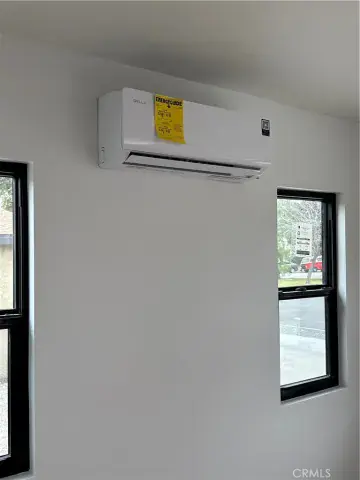 Interior features include indoor laundry hookups, stainless steel refrigerator and stove, and mini-split systems in both the living room and bedroom.