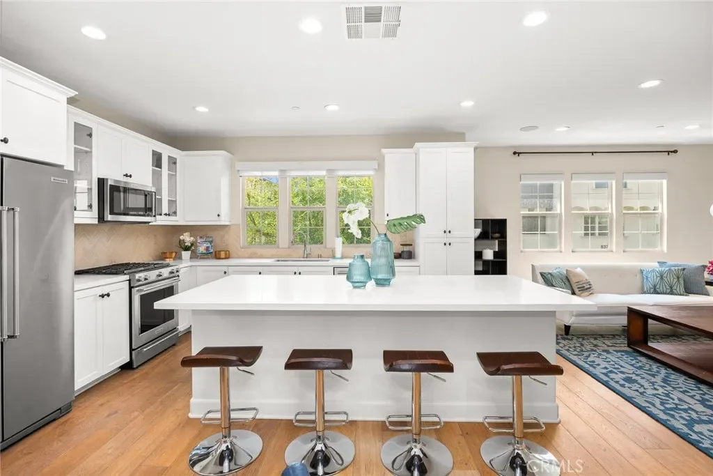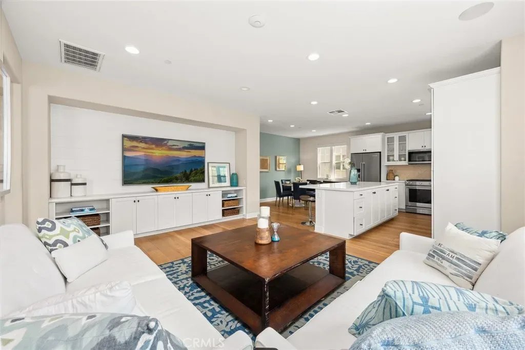From the moment you step inside, you’ll notice the attention to detail and elevated design throughout. The home features top-of-the-line appliances in a modern, chef-inspired kitchen, perfect for both everyday living and entertaining. The living room is enhanced by custom-built cabinetry surrounding the TV area, creating a stylish and functional focal point.