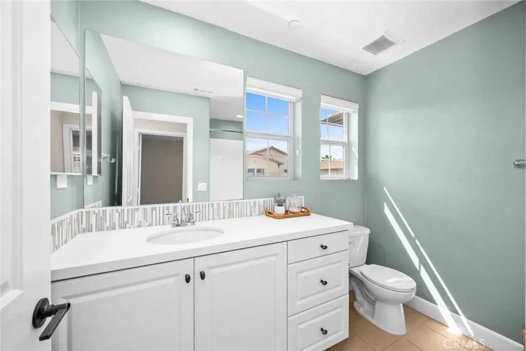 As you make your way upstairs, elegant built-in stair lighting guides your path, setting the tone for a well-designed upper level where all three bedrooms are thoughtfully positioned. The primary suite offers a private retreat, complemented by a secondary full bathroom serving the additional bedrooms, while a conveniently located powder room on the main level enhances everyday living and entertaining.