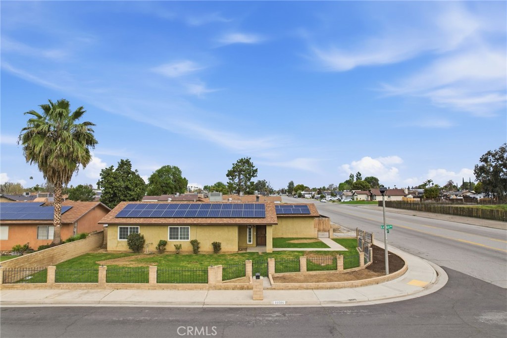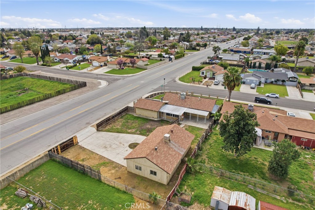 This beautifully maintained 3-bedroom, 2-bath single-story home sits on a fully fenced lot over 11,000 sq. ft. and features a standout detached 900 sq. ft. shop with 220-volt power, a swamp cooler, and flexible interior walls that can be opened to create one large workspace. With ample room for approximately seven additional vehicles or an RV, this property offers exceptional versatility and room to grow. The home also includes 33 fully paid solar panels with a transferable warranty and a tankless water heater, delivering excellent energy efficiency and long-term savings. Inside, the home offers 1,188 sq. ft. of comfortable living, highlighted by newer wood-look tile flooring throughout, matching Whirlpool appliances (2019), and recessed lighting. The welcoming kitchen features a farmhouse sink and synthetic quartz countertops, while the enclosed patio with a cozy fireplace provides the perfect space for relaxing or entertaining. The attached garage includes the laundry area, and the home is located in a neighborhood with curbs, sidewalks, and street lights, blending warmth, functionality, and everyday comfort.