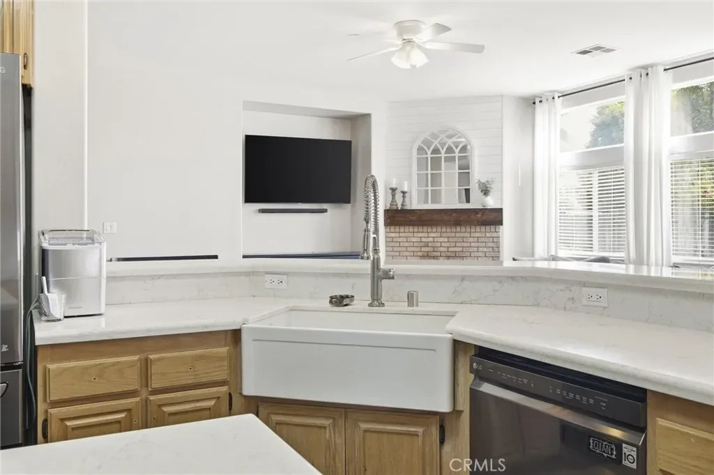 Beautifully maintained 4 bedroom, 2 bathroom home in the desirable Spring Meadow neighborhood near Liberty High School, one of Bakersfield’s highly rated schools. Situated on a spacious corner lot, this home offers strong curb appeal, vaulted ceilings, abundant natural light, and an open layout connecting the living, dining, and kitchen areas. The kitchen features updated countertops, stainless appliances, and bar seating ideal for everyday living and entertaining. The living room fireplace creates a warm focal point, while the primary suite offers a spacious and comfortable retreat. Step outside to a covered patio and backyard designed for entertaining, with room for RV parking or future customization. Move-in ready in an established neighborhood.