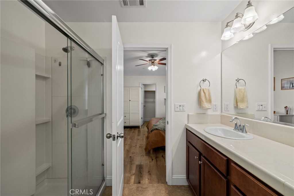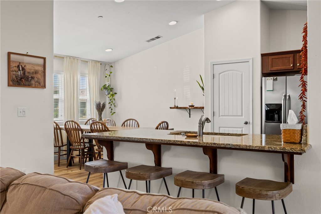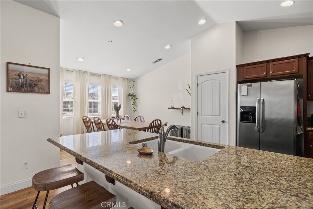 Welcome to this well-maintained 4-bedroom, 3-bathroom single-story home built in 2013 in one of Northwest Bakersfield’s most sought-after neighborhoods. Vaulted ceilings, bay windows, and an open floor plan create a bright, spacious great room that flows into a kitchen with granite slab countertops, birch cabinetry, stainless steel appliances included, a pantry, and a breakfast bar. Beautiful updated flooring throughout the home gives it a fresh, move-in-ready feel. A sliding glass door opens to the backyard on a 7,405 sqft lot. The owner’s suite features a generous walk-in closet and private bath, two secondary bedrooms share a Jack and Jill bath with dual vanities, and a third full bathroom rounds out the layout. Energy-efficient dual-pane windows, a tiled indoor laundry room with storage, and a hallway linen closet add everyday convenience. Rosedale Union school district — Patriot Elementary, Freedom Middle, and Frontier High.