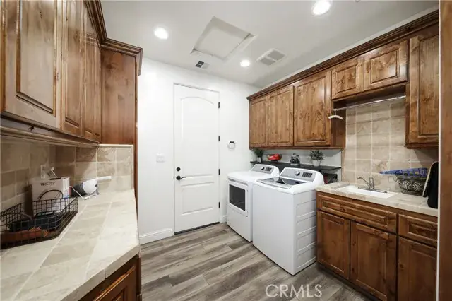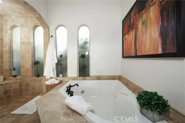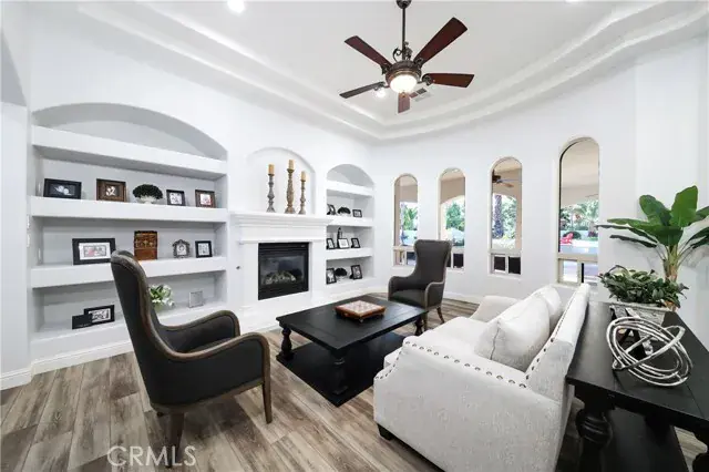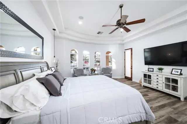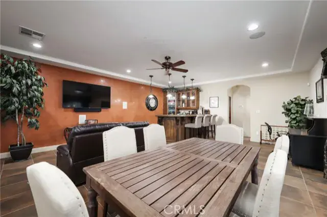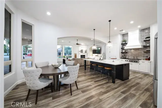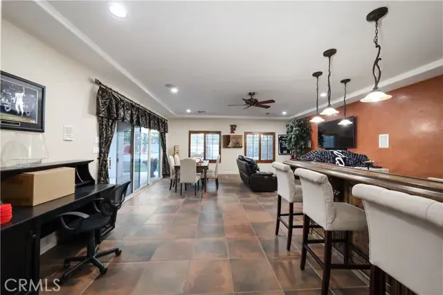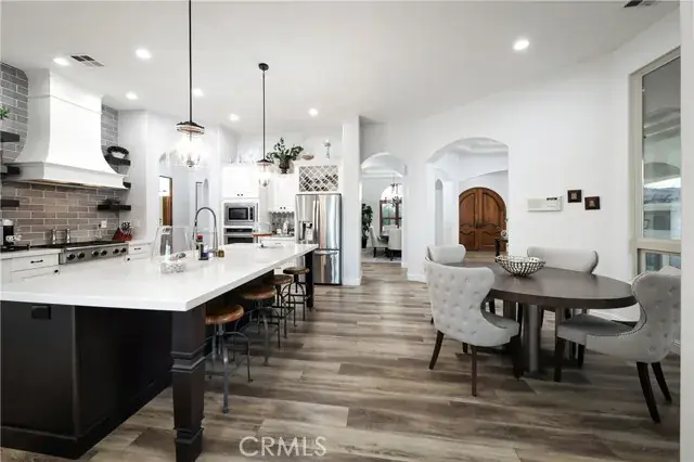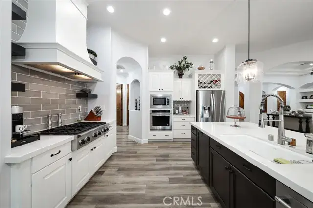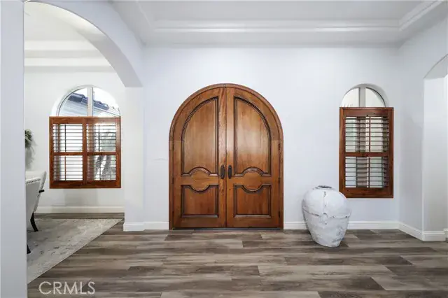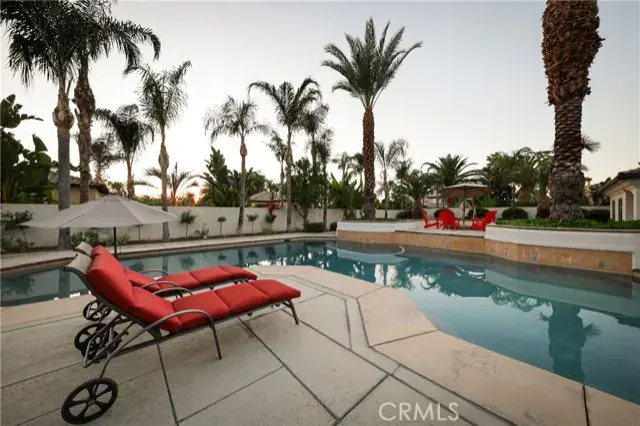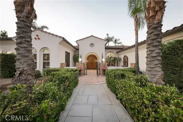 This stunning turnkey home in the highly desirable Talladega neighborhood offers over 4,200 sq. ft. with five bedrooms, four baths, (1 bd/1ba are in the guest house) and a split-wing wide open floorplan. A grand double-door entry opens to soaring tray ceilings and elegant living spaces. Highlights include paid solar, formal living and dining rooms, surround sound, wood blinds, central vac, 8-foot solid core doors, and rain gutters. The gourmet kitchen features quartz countertops and stainless steel appliances. The expansive master suite offers a walk-in closet and spa-like bath with Jacuzzi tub and large walk-in closet. .6 acres of outdoor living boasts a sparkling pool, built-in BBQ, and fire pit, with RV parking for convenience. A versatile guest/pool house perfect for extended family, hobbies, or car enthusiasts. Five garage spaces complete this one-of-a-kind residence designed for luxury, comfort, and entertaining.
