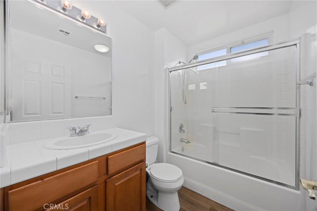 Welcome to this beautifully maintained home in the desirable Seven Oaks Place community. Designed with vaulted ceilings, wood-look flooring, and an open layout, this home offers style and comfort. The spacious living room with fireplace flows into the kitchen featuring rich cabinetry, breakfast bar, and stainless appliances. A bright dining area opens to the backyard for easy entertaining. The front bedroom is en suite with its own bathroom—perfect for guests or multi-generational living. With a prime location in Seven Oaks Place near shopping, dining, and top schools, this move-in ready home delivers comfort and convenience.