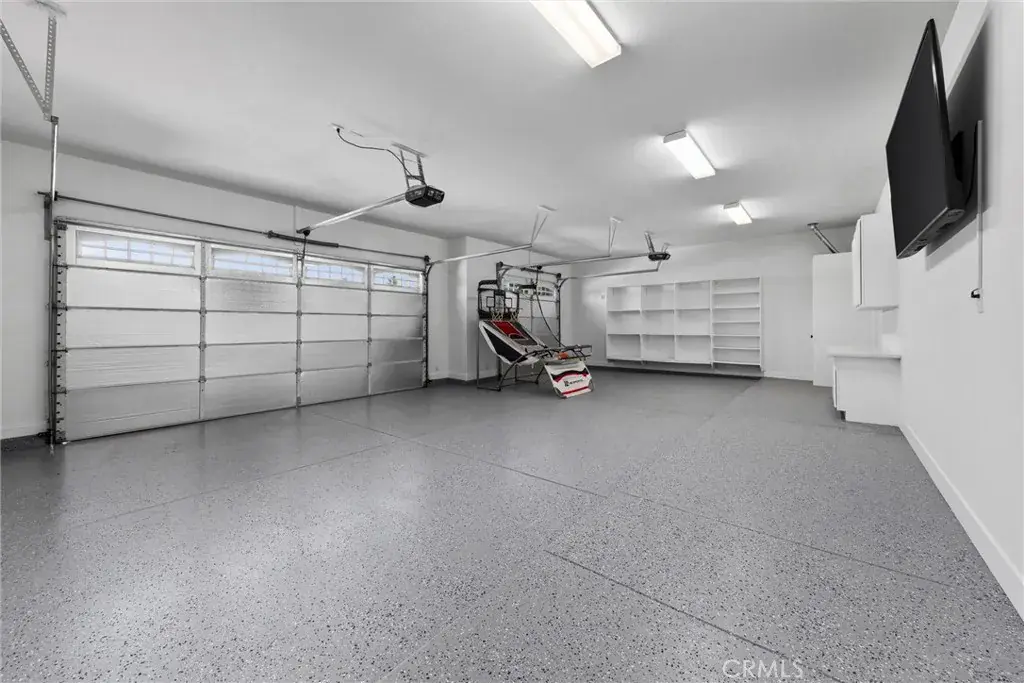 Car enthusiasts will appreciate the finely finished 830 sq feet three-car garage, complete with epoxy flooring, mounted big screen TV and even a Tesla charging station. Additionally, the property provides ample space for RV parking, catering to your adventurous spirit. The meticulously manicured landscaping envelops the property, enhancing its curb appeal and adding to the overall allure.