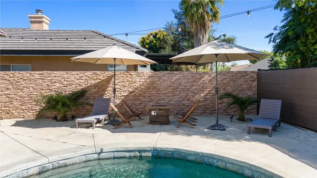 As you step outside, you’ll be greeted by an oasis of relaxation. The glimmering PebbleTec® pool beckons you to take a refreshing dip, while the adjacent 381 square feet guesthouse provides an additional bedroom, bathroom, and full kitchen, perfect for accommodating guests or creating a private retreat. Imagine spending evenings by the outdoor fireplace, creating memories with loved ones, or enjoying the sand pit area for added entertainment.