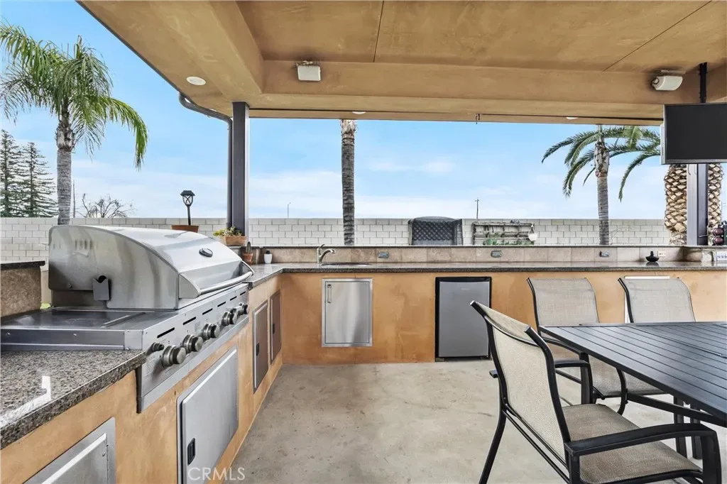 timeless elegance & durability. Step outside to a resort style backyard complete with a sparkling pool, fire pit, and an outdoor kitchen