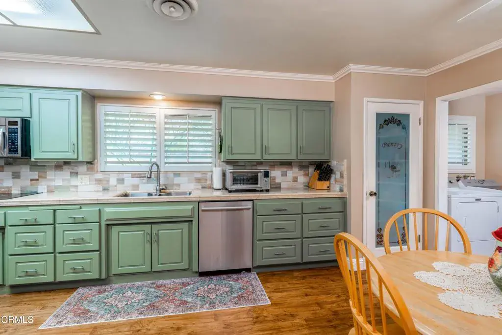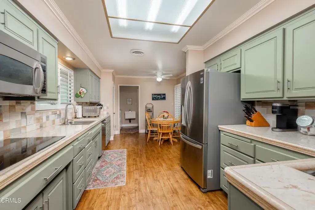 This charming 3-bedroom home (almost 2,000 sf) in 55+ Kern City has numerous desirable upgrades and is move-in ready. Upgrades include vinyl flooring in much of the home, double pane windows, plantation shutters, an alarm system and amazing landscaping in the front and back yards. The front yard has a unique, river rock feature which adds a lot of character to the property. The backyard is a gardener’s dream w/ lots of fruit trees, plus additional raised beds w/ beautifully constructed wire fencing for vegetables to grow on. It also has a side yard w/ a large grass area, a spacious covered patio and a storage shed. There is a large kitchen which has been tastefully updated and has custom cabinets, stainless-steel appliances and a decorative tile backsplash. The kitchen opens into a cozy family room and dining area w/ a brick fireplace. This is one of the nicer homes in Kern City and will not last long.