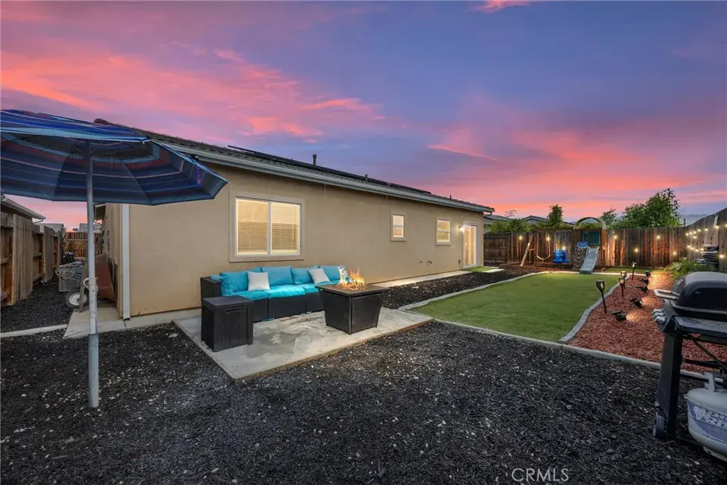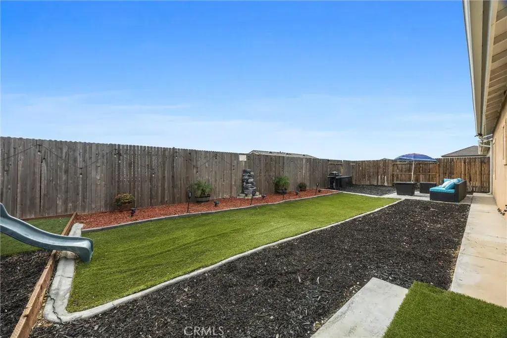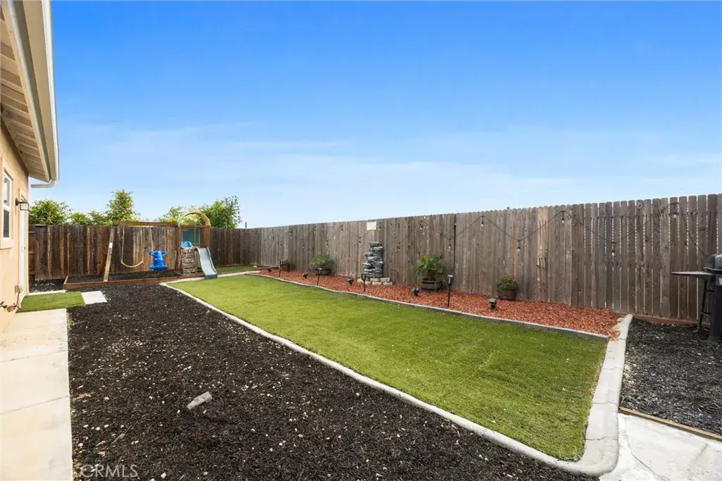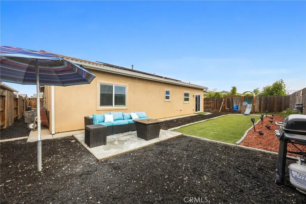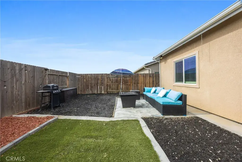 Welcome to 9907 Turning Leaf Ln in Bakersfield, a beautiful 4-bedroom, 2-bath home that blends modern updates with everyday functionality. Recently repainted inside and out, this home features leased Tesla (SolarCity) solar panels, a fully fenced backyard with drought-efficient faux grass, and a refreshed front yard with an expanded driveway. The open kitchen offers stainless steel appliances including the refrigerator and gas stove, modern lighting, and electrical already in place for a future island. Both bathrooms include high-efficiency toilets, updated fixtures, and a shower and tub combination in the primary suite with a closet conveniently located just off the bathroom. Additional features include smart switches compatible with Alexa, updated lighting throughout, an electric fireplace, and a laundry room (W/D included) that leads directly to the two-car garage with built-in shelving and extra storage. The side yard offers approximately 13 feet of space, providing potential for RV or truck parking. Located in a quiet, established neighborhood close to parks and schools, this home combines comfort, efficiency, and style in one inviting package.