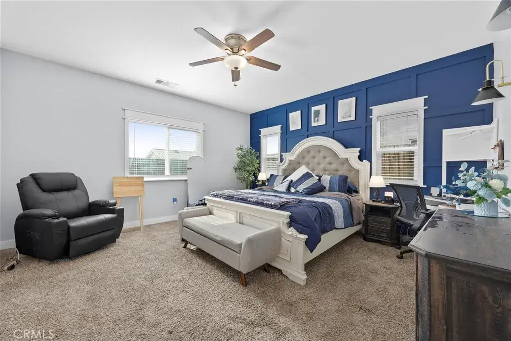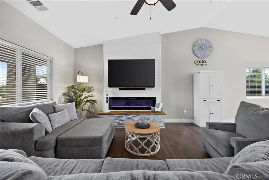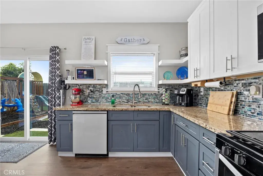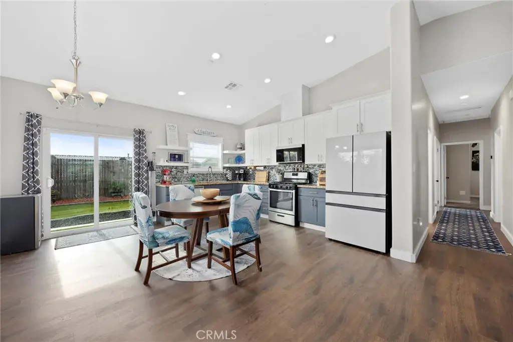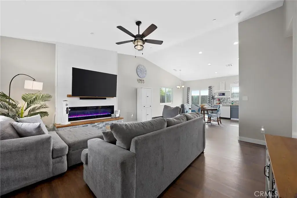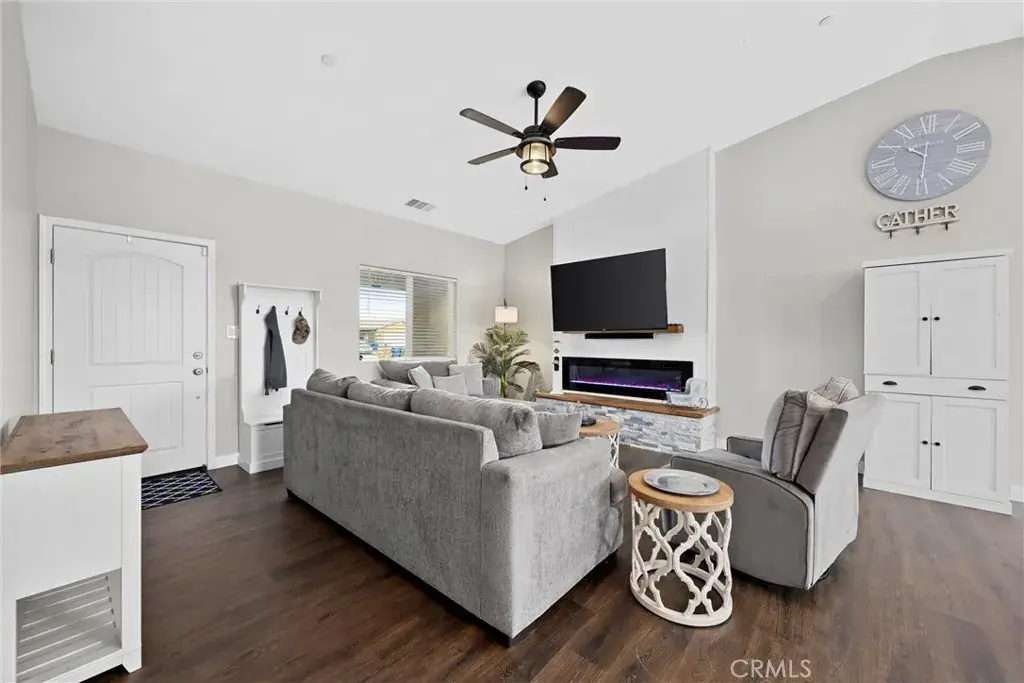 Welcome to 9907 Turning Leaf Ln in Bakersfield, a beautiful 4-bedroom, 2-bath home that blends modern updates with everyday functionality. Recently repainted inside and out, this home features leased Tesla (SolarCity) solar panels, a fully fenced backyard with drought-efficient faux grass, and a refreshed front yard with an expanded driveway. The open kitchen offers stainless steel appliances including the refrigerator and gas stove, modern lighting, and electrical already in place for a future island. Both bathrooms include high-efficiency toilets, updated fixtures, and a shower and tub combination in the primary suite with a closet conveniently located just off the bathroom. Additional features include smart switches compatible with Alexa, updated lighting throughout, an electric fireplace, and a laundry room (W/D included) that leads directly to the two-car garage with built-in shelving and extra storage. The side yard offers approximately 13 feet of space, providing potential for RV or truck parking. Located in a quiet, established neighborhood close to parks and schools, this home combines comfort, efficiency, and style in one inviting package.