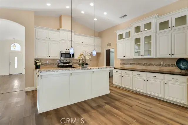 Beautiful, Spacious and located in a great established SW Bakersfield neighborhood! Welcome to this Beautifully Upgraded 5 Bedroom Home offering both Comfort and Style! It has approx. 2,426 sf, split wing layout, vaulted ceiling, stunning remodeled kitchen with white cabinets, granite and more, 2 living areas that offer space and relaxation, laundry room, formal breakfast and dining areas for casual meals and formal gatherings, huge vaulted detailed wood ceiling patio with plenty of space to enjoy the outdoors, concrete block & wood fences, synthetic grass for low maintenance and solar panels for energy production.