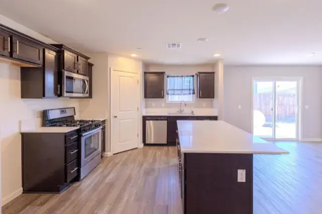 Modern luxury meets everyday comfort in this stunning 4-bed, 3-bath Bakersfield home! Built in 2022, it features an open-concept layout, quartz countertops, stainless-steel appliances, and elegant wood-look tile floors. Enjoy low energy bills with solar panels and relax in your spacious primary suite with a spa-style bath. The backyard is a blank canvas ready for your dream setup. Located near great schools, shopping, and parks — this move-in-ready home truly has it all!