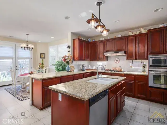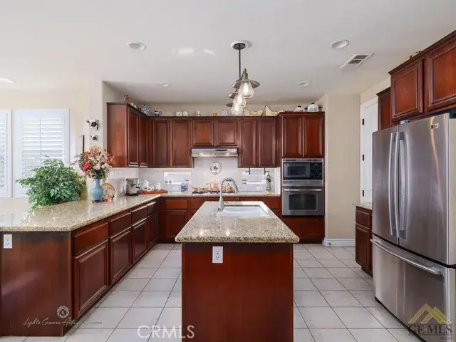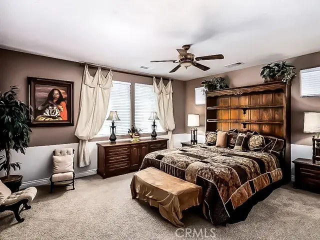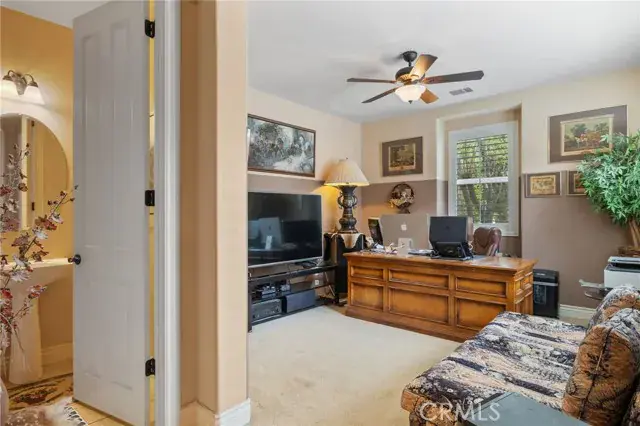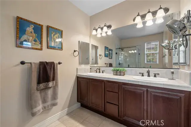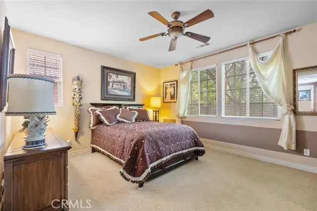 Custom BLU S.K.Y Home in Gated “City In The Hills Juliana’s Garden” community.  This wonderful home features a TWO primary suites, one on each level with two additional bedrooms on the first floor. Significantly upgraded custom home with a custom designed natural stone front, on a very quiet semi-cul-de-sac street facing a park with a wonderful dream layout floor plan including two large suites, plus two other bedrooms with a park view in front bedroom. The entire 2nd floor is a large suite with a retreat and view completely private. Primary bath has an oval tub with fully tiled tub deck and sides, tiled primary shower with tiled floor. Frame less shower enclosure, bevel-edge mirror. Large walk-in closets in both suites. Two-tone interior paint. Juliana’s Garden Neighborhood Amenities Two Gated Entrances to Community Interior Mediterranean Garden With Fountains Interior Neighborhood Private Parks and Garden with Tot Lot Tree Lined Streets 6 minutes to markets and shopping 8 minutes to downtown Energy-efficient features include fiber-optic internet (up to 1000 Mbps), dual-glazed Low-E windows, dual-zone air conditioning, and a solar electric system by Sharp. All bedrooms are equipped with lighted ceiling fans and remote controls, outdoor lighting is on a timer, and there’s a gas BBQ hookup in the backyard. Additional upgrades include 220V outlet in the garage with and multiple GFI outlets, garage door opener with remote, and automatic front and backyard sprinklers. Interior highlights include 9-foot ceilings with 8-foot doors, oversized 5” baseboards, a large family room with formal dining area, and a welcoming entryway with tile flooring. Window treatments throughout the home include shutters, drapes, blinds, and Roman shades. The gourmet kitchen features stainless steel appliances, granite countertops with bullnose edges, upgraded Beachwood cabinetry, and a spacious nook with French doors leading to the backyard. Bathrooms include oil-rubbed Venetian bronze faucets and matching fixtures, and all door and light hardware is finished in complementary dark bronze tones.