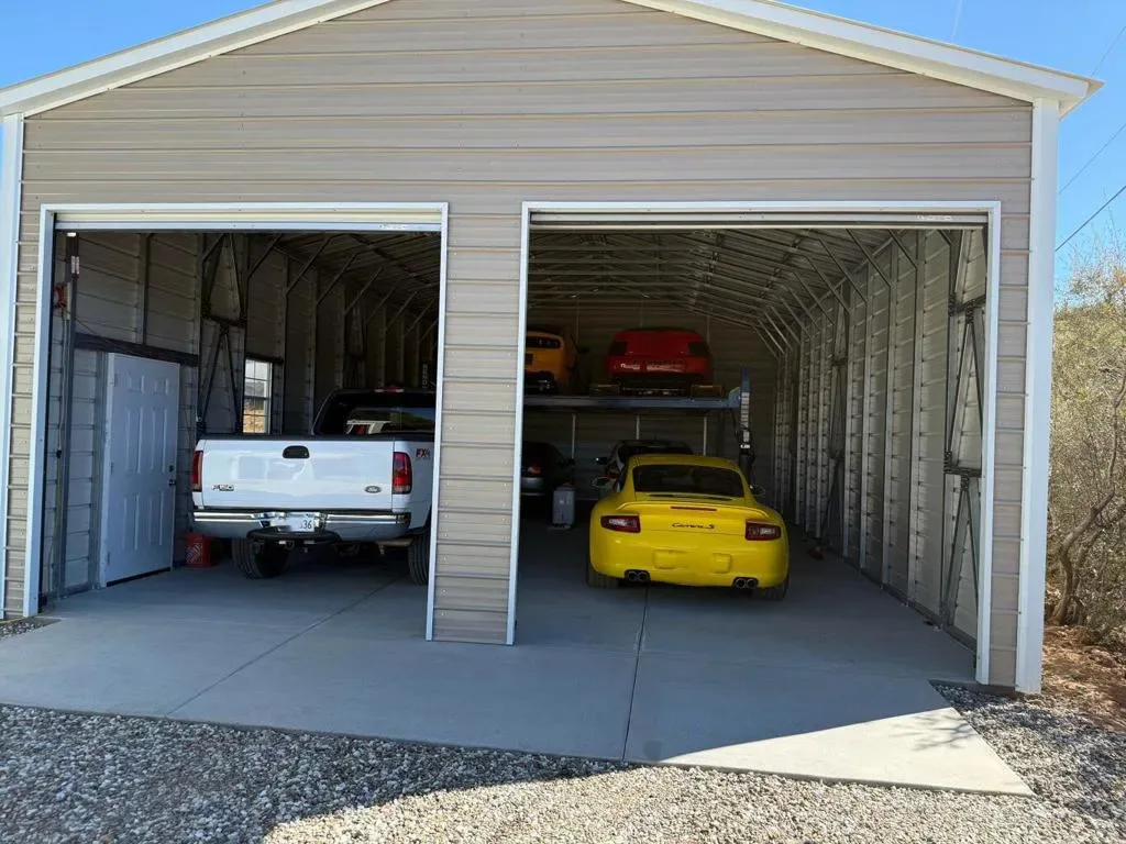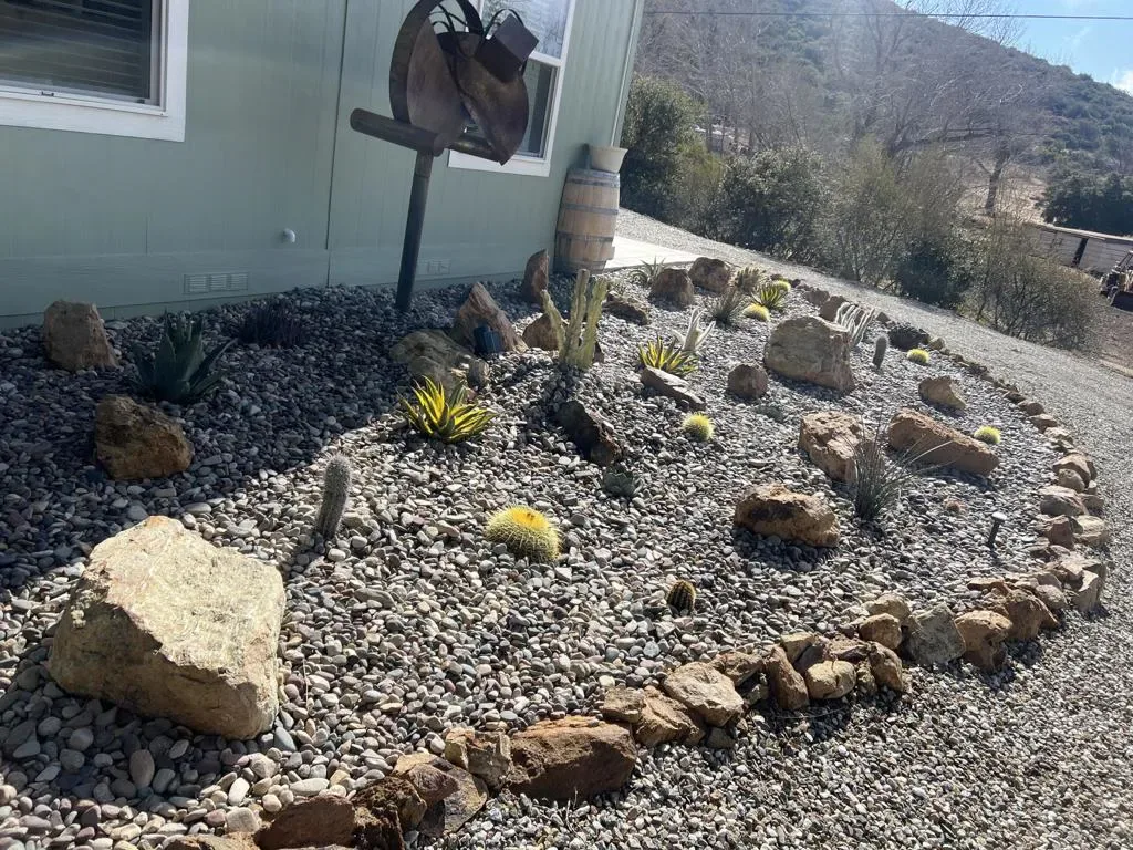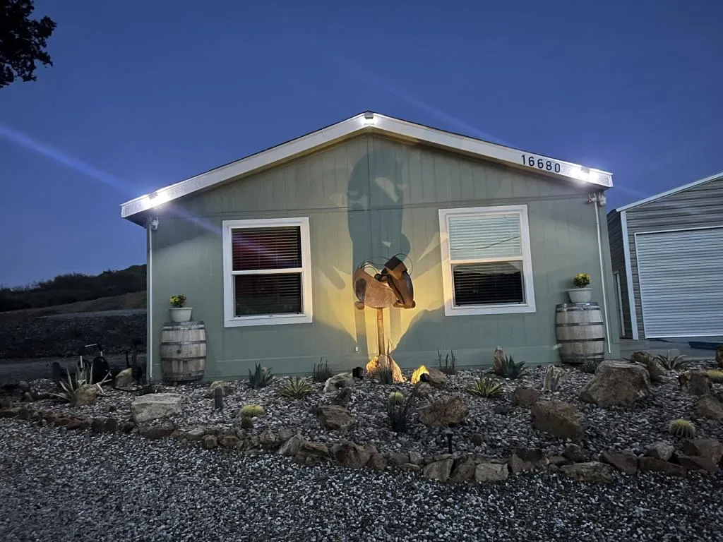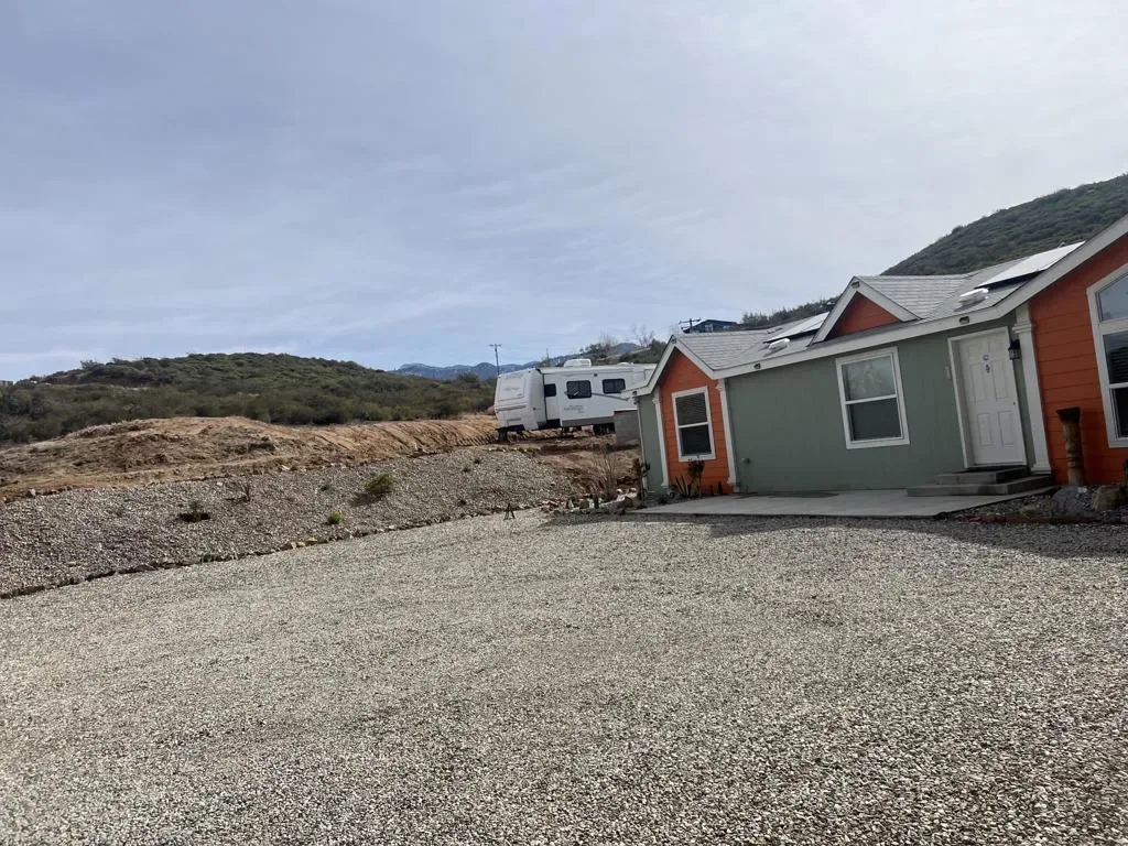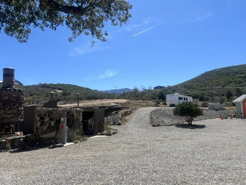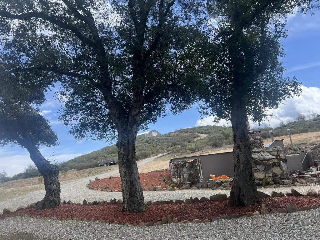 This parcel is for an entrepreneur! Structures to hold 21cars! Property consists of a large 53′ x 45′ Quonset with a 14 fl. roll-up door that can hold almost anything from a large car collection, a studio for an artist, ceramicist, a sculptor, a welding or repair shop, horse grooming facility, or whatever special needs you have–of course w/county approval. There are 3 additional buildable pads for other structures. The lower pad features a (2022) 2/2 ba home with over $150,000 in upgrades. Examples: LED canned lighting throughout, kitchen has hardwood cabinets, quartz countertops and Whirlpool stainless steel appliances, laundry room w/matching Whirlpool washer/dryer, 3 Smart TVs and 18 security cameras through property. Some furnishings and decor may be purchased under separate contract. Super fast Starlink satellite internet and Wi-Fi extenders allow internet throughout entire property. Front and rear patios with firepit and bench in front. Presently under construction is a $100K deluxe outdoor kitchen w/stainless appliances, an outdoor shower, waterfall, an 8 person Jacuzzi, 75′ Smart tv, and pony wall with marble counter top–all under shade. Roof has 17 ‘leased’ solar panels assumable for $185 a month plus a 6500 Kw battery storage. Electricity bills are practically non-existent! You’ll also find a 13,500Kw dual-fuel generator in a locked security enclosure for backup if ever needed. There is an attached 6 car garage w/ 2 electric 10 ft. roll-up doors recently added with LED lighting inside. An oversized $25K septic system designed to support additional future structures. To the north is an entertainment area including a rock firepit, custom lighting and a large underground storage shelter. The 3rd pad has ample room to accommodate several ‘Tiny Home’ residences. The top pad w/very large Quonset has additional space to build a luxury home w/views of the valley below! Clean air and water year-round. Located in Twin Pines community only 15 minutes above city of Banning w/ shopping restaurants, etc. and only 35 minutes to Palm Springs.
