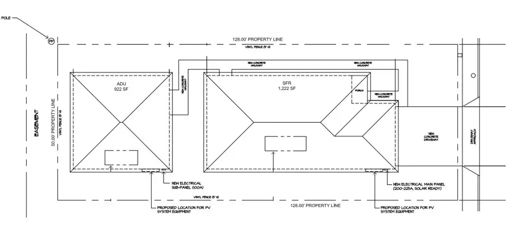 Your opportunity to own a BRAND new home plus an Accessory Dwelling unit (ADU)! The home is a 2 bedroom, 2 bath 1,222 sq ft home with a 2 car garage. Walk in closet in the main bedroom. The ADU is a 2 bedroom, 1 bath 922 sq ft ADU. Both are smartly designed for comfortable living! The kitchen and baths will come with White Shaker style cabinets and white quartz counter tops. The exterior walls are made with 2×6 lumber and filled with insulation. The windows are dual pane windows. New technology to keep your home cool in the summer and warm in the winter. The solar production system is fully paid for and will be owned by you with no payments to anyone for the power it produces. The home and ADU both have vinyl flooring throughout. They are currently under construction BUT we ARE now ready for showings. There is still work needed to be done to complete the project which is on going. Yet, you can come see it for yourself now to make it yours before someone else does.