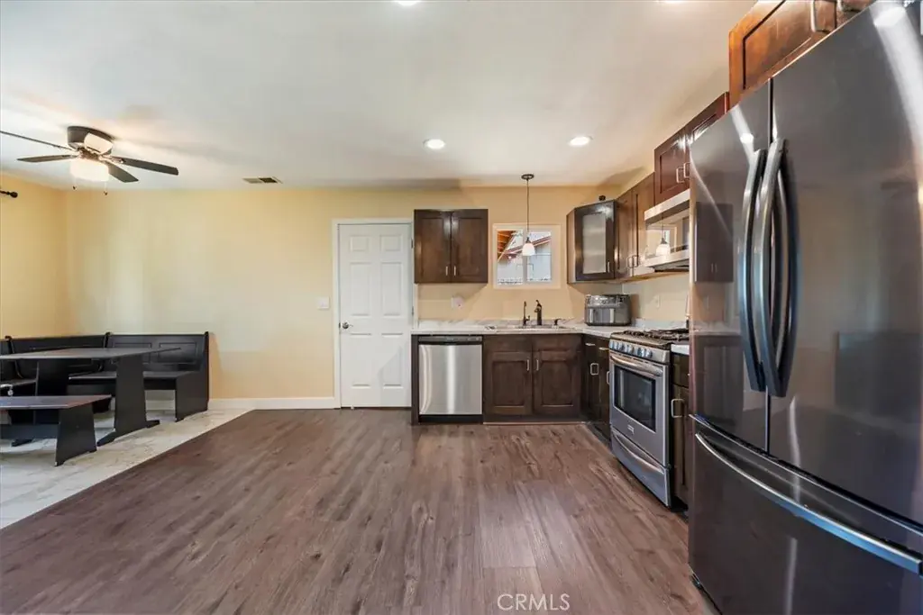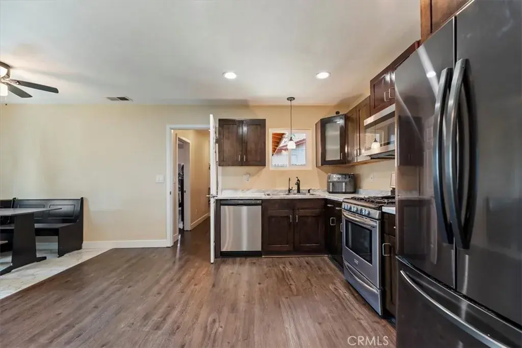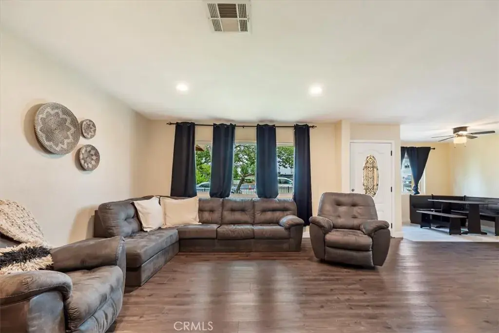 Beautifully updated 5-bedroom, 2-bath home in the heart of Banning! This spacious 1,740 sq ft residence offers comfort, style, and energy efficiency. With solar panels that will be paid off through escrow, you’ll enjoy lower utility bills from day one. Over the past five years, this home has seen major upgrades including a new roof, HVAC system, and dual-pane windows. The kitchen and bathrooms have been tastefully remodeled, featuring modern finishes and fixtures. Laminate flooring, installed just a year ago, adds warmth and durability throughout the home, and a brand-new dishwasher (only one month old) makes daily chores a breeze. You’ll love the ceiling fans in every room, keeping the home cool and comfortable year-round. Located directly across from a preschool, this property is ideal for families or those seeking a convenient location. Step into the backyard with endless possibilities—whether you envision a lush garden, sparkling pool, or a future ADU, the space is ready for your imagination.
