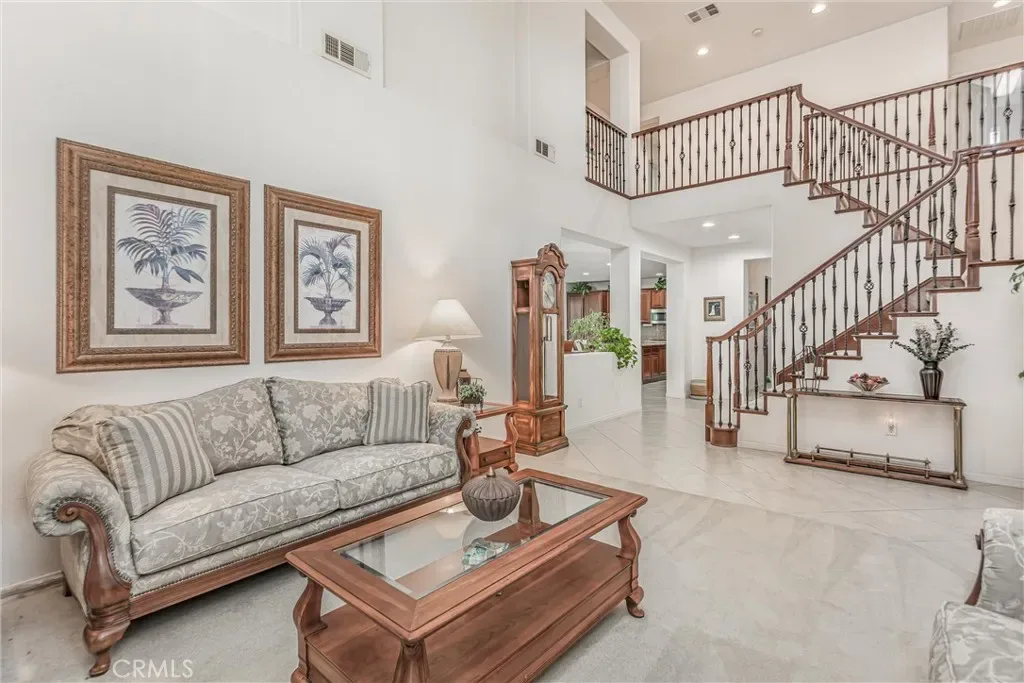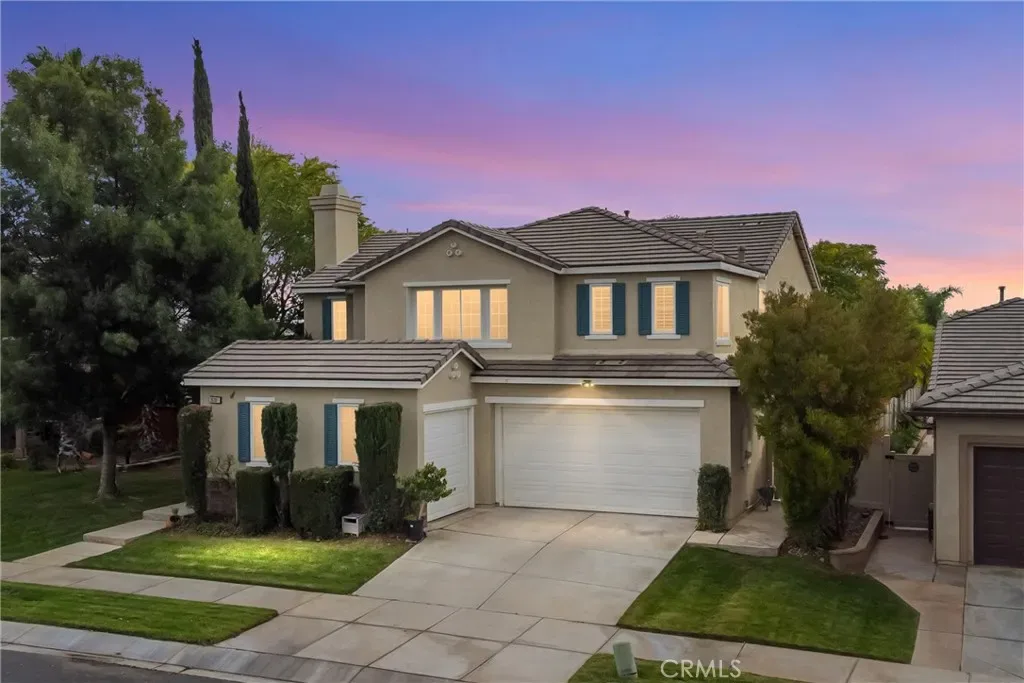 This two-story home is located on one of the largest lots along the golf course in the Tournament Hills gated community. If you like SPACE and VIEWS, this is the home for you!! The first thing visitors see upon entering the home, is a beautiful custom tiled medallion at the front entry. High ceilings and neutral-colored flooring and walls come together to create an impressive view of the formal living room (with a fireplace) and staircase with peekaboo views to the family room and massive backyard. An office is located to the right of the main entrance and has a custom-built bookcase, spanning an entire wall. The family room and kitchen are open concept and have a wall of windows, showcasing the spectacular backyard and endless views. A separate formal dining room, guest bedroom with sliding doors to the backyard and a 3/4 bathroom are also located downstairs. The kitchen has granite countertops, double ovens, a built-in gas cooktop, microwave, dishwasher AND an over-sized kitchen island to accommodate counter seating and meal prep. There is also dedicated space for a breakfast nook with sliding glass doors for backyard access. Upstairs are the primary bedroom and two additional bedrooms and a LARGE loft, currently being used as a game area with electronics, a pool and poker table. The numerous windows from the loft offer spectacular views of the local San Bernardino mountains. The primary bedroom has an ensuite bathroom and spacious walk-in closet but the BEST part of this bedroom is the balcony and the VIEWS one gets of the backyard, golf course and hills off San Timoteo Canyon. The backyard is massive and an entertainer’s delight with a patio cover that extends the entire length of the house, an outside BBQ with sink, gas burner, fridge and bar seating, a pool, large grassy area and a viewing deck at the far end of the yard. This home also has a 2-car garage and a single car garage and a large storage shed on the side yard. This gated community features beautiful green spaces, walking paths, the lake, gazebo and security presence. Tournament Hills Elementary is walking distance and other amenities in close proximity include shopping, restaurants, parks and close freeway access.