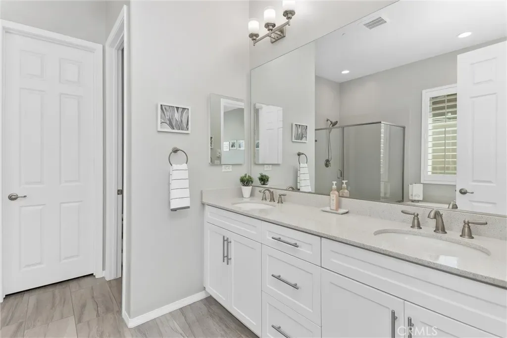 The secondary bathroom has been tastefully remodeled and features a walk-in shower with a quartz surround, a high-quality glass enclosure, and a new quartz vanity. Additional highlights include an indoor laundry room with a utility sink and a spacious walk-in storage room.