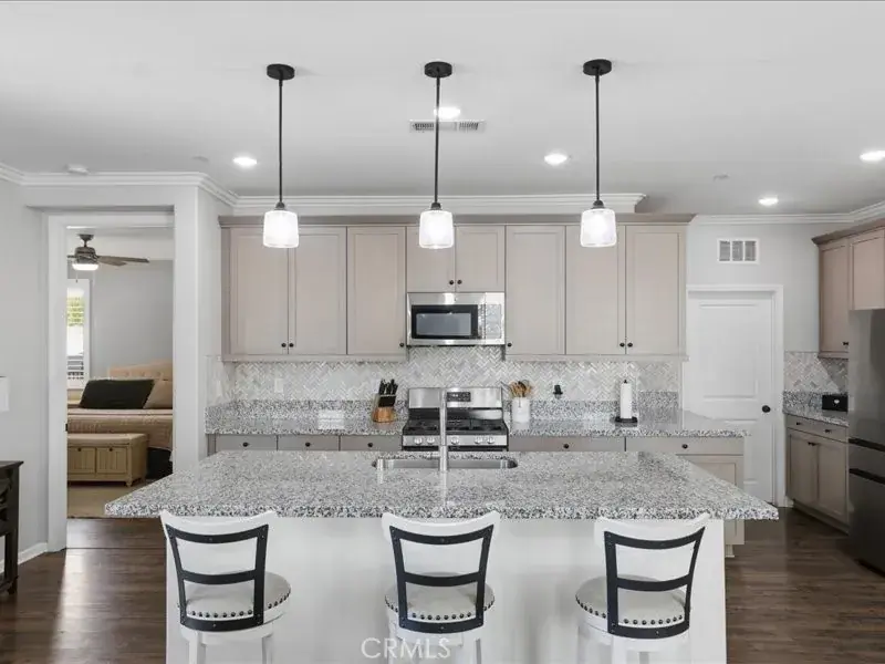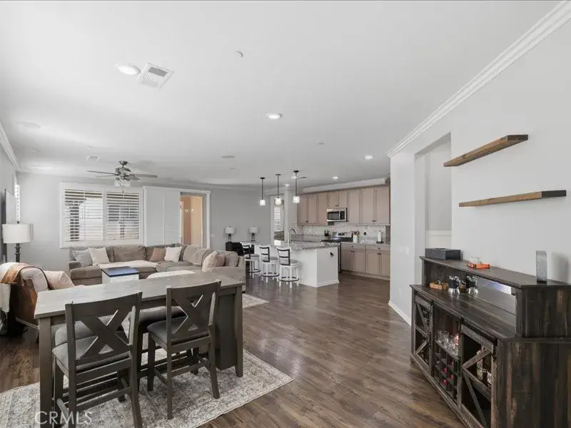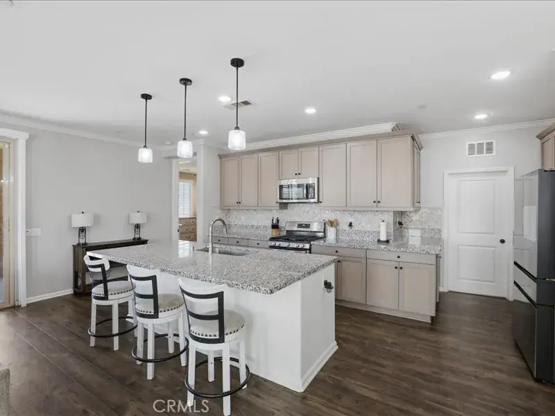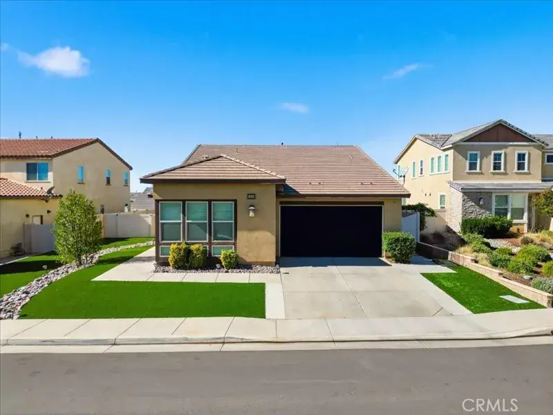 Welcome to this beautifully upgraded home located in the Sundance community of Beaumont. This single-story home features an open-concept layout designed for entertaining and everyday comfort. From the moment you step inside, you’ll notice the spacious feel and the elegant finishes throughout. The kitchen is a true showstopper! Complete with beautiful granite countertops, custom tile backsplash, a stand-alone island, stainless steel appliances, and a walk-in pantry. The home also includes crown molding, plantation shutters, upgraded baseboards, recessed lighting, and stylish fixtures. Enjoy energy savings year-round with Tesla Solar, offering an eco-friendly and cost-efficient solution. Step into the backyard and prepare to be impressed. Features include artificial turf, an extended concrete covered patio, dog run and a pergola perfect for outdoor dining and relaxing evenings. Inside, the bathrooms have all been tastefully remodeled with white tile countertops, updated flooring, and modern finishes. The hallway bathroom even features a rustic plank accent wall for added charm. The spacious primary suite offers privacy, with secondary bedrooms thoughtfully separated by a hallway. Residents of Sundace can enjoy the community park, playground and Cascade Park with its two pools. You truly have to see it to appreciate it!