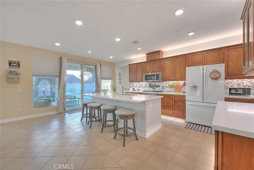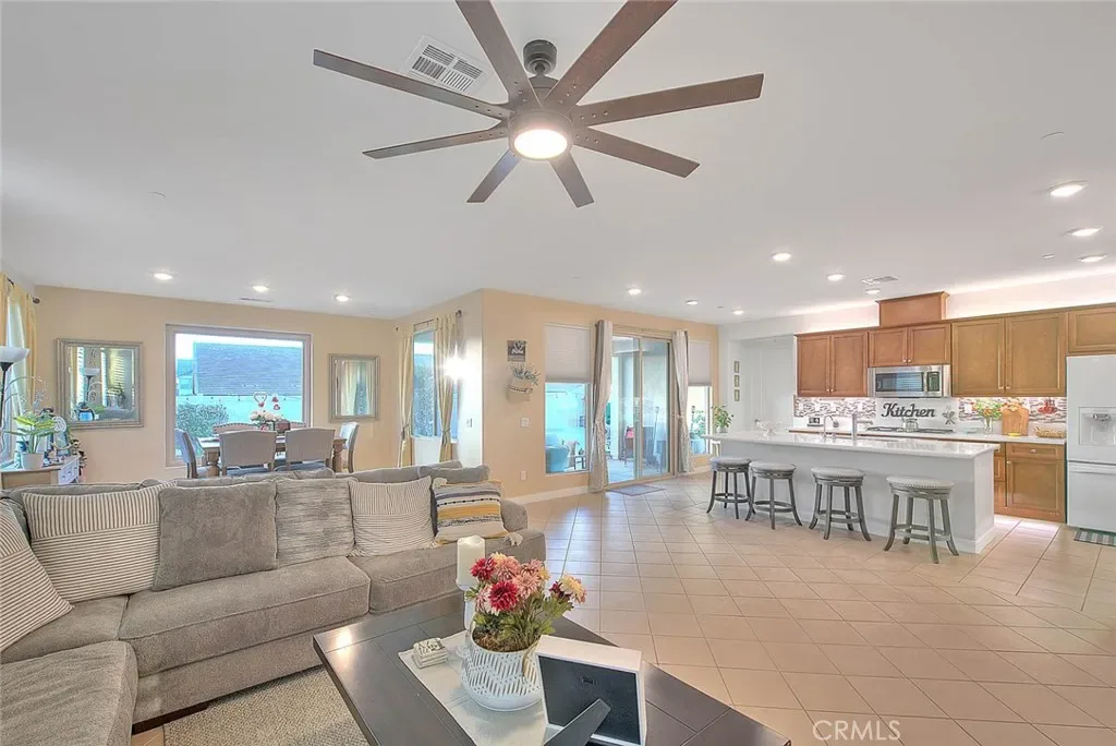 The heart of the home is the modern kitchen featuring a large center island with quartz countertops, abundant cabinetry, and plenty of space for cooking, entertaining, and everyday living. The kitchen flows seamlessly into the living and dining areas, making it perfect for gatherings with family and friends.