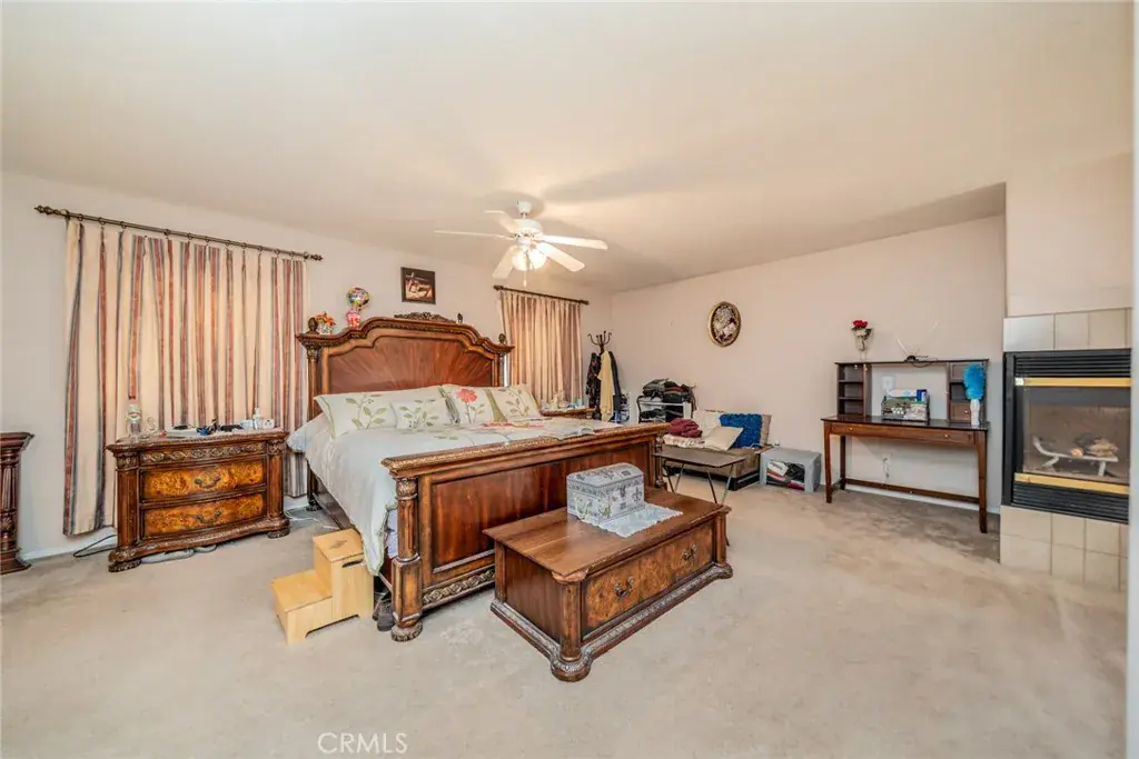 Presenting an exceptional opportunity in the highly sought-after Oak Valley Greens neighborhood, featuring NO HOA fees! This stunning residence boasts a versatile floor plan, encompassing four bedrooms and three full bathrooms within 3,111 square feet of living space, situated on an expansive 8,712 square foot lot.Upon entering, you will be captivated by the inviting main-floor bedroom and full bathroom, ideal for guests, in-laws, or as a dedicated home office. The spacious family room, complete with a cozy fireplace, seamlessly flows into the living and dining areas, creating a perfect setting for gatherings. The expansive kitchen, equipped with a central island, is designed for entertaining and culinary delights, enhanced by elegant tile flooring and plush carpeting throughout, complemented by ceiling fans for added comfort.The upper level features a luxurious master suite with a retreat and its own fireplace, providing a serene escape. A generously sized walk-in closet adjoins the master bathroom, adding to the appeal of this exquisite home. Additionally, the upstairs game room/loft offers endless possibilities for entertainment and relaxation.The exterior of the property is equally impressive, featuring a large lot with an RV parking area, a covered patio with ceiling fans, and a charming front porch, ideal for outdoor enjoyment. Conveniently located near golf courses, parks, shopping, dining, and easy freeway access, this move-in-ready home perfectly balances comfort, convenience, and style. Don’t miss your chance to reside in one of Beaumont’s most desirable communities!