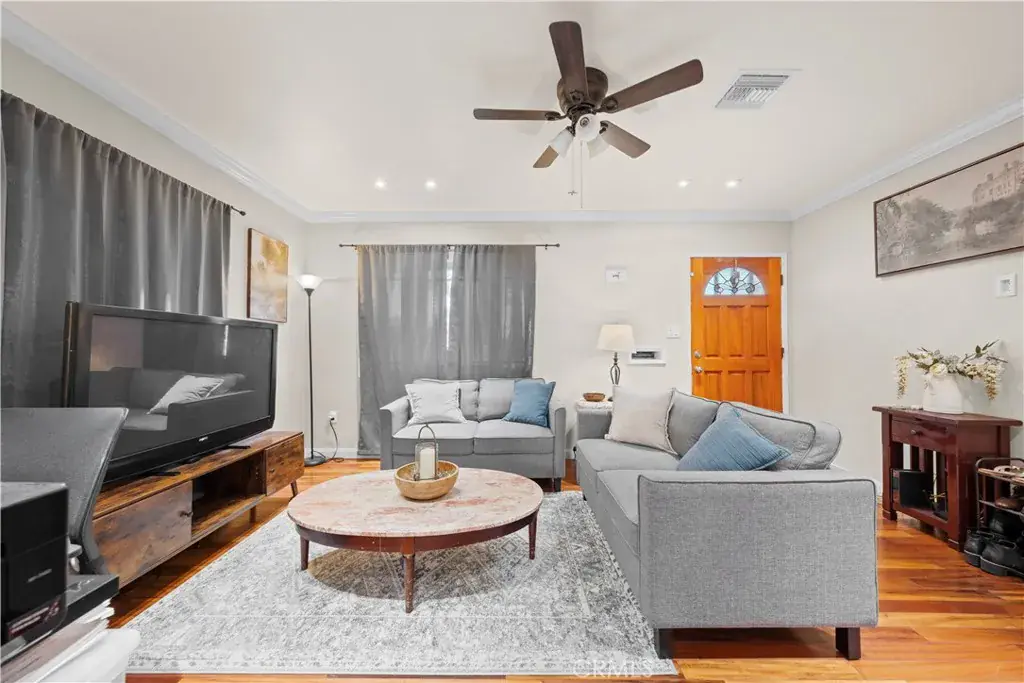 Move-in ready perfection with space, upgrades, and serious future potential. Located in Bell Gardens just minutes from Downey, this beautifully maintained home offers the rare combination of modern upgrades, outdoor space, and flexibility for today’s lifestyle and tomorrow’s plans. The home features copper plumbing, central A/C and heat, a newer roof, a new electrical panel, a tastefully remodeled kitchen and bathroom, and hardwood floors throughout — providing comfort, efficiency, and peace of mind from day one. Step into a spacious backyard framed by mature fruit trees, ideal for entertaining, family gatherings, or simply unwinding in your own private retreat. The lot also offers excellent ADU potential with separate parking plus room for RV or boat parking, adding exceptional value and versatility. Whether you’re searching for a turn-key residence or a smart long-term investment, this home delivers location, condition, and opportunity in one complete package.