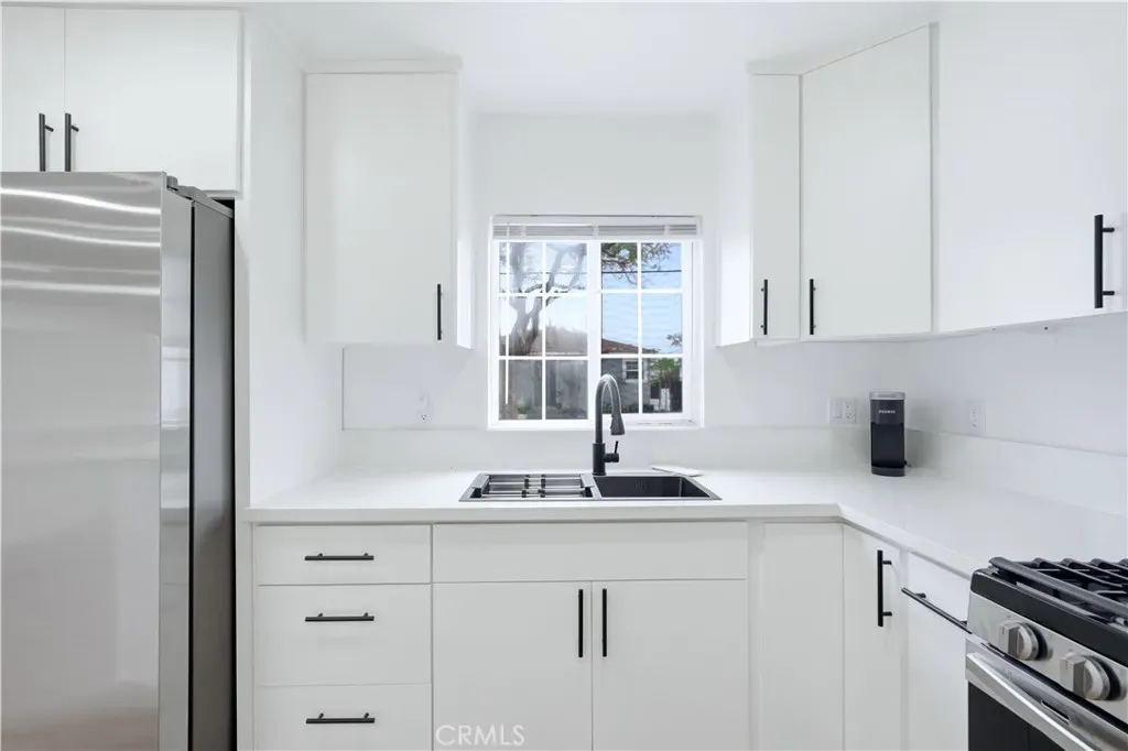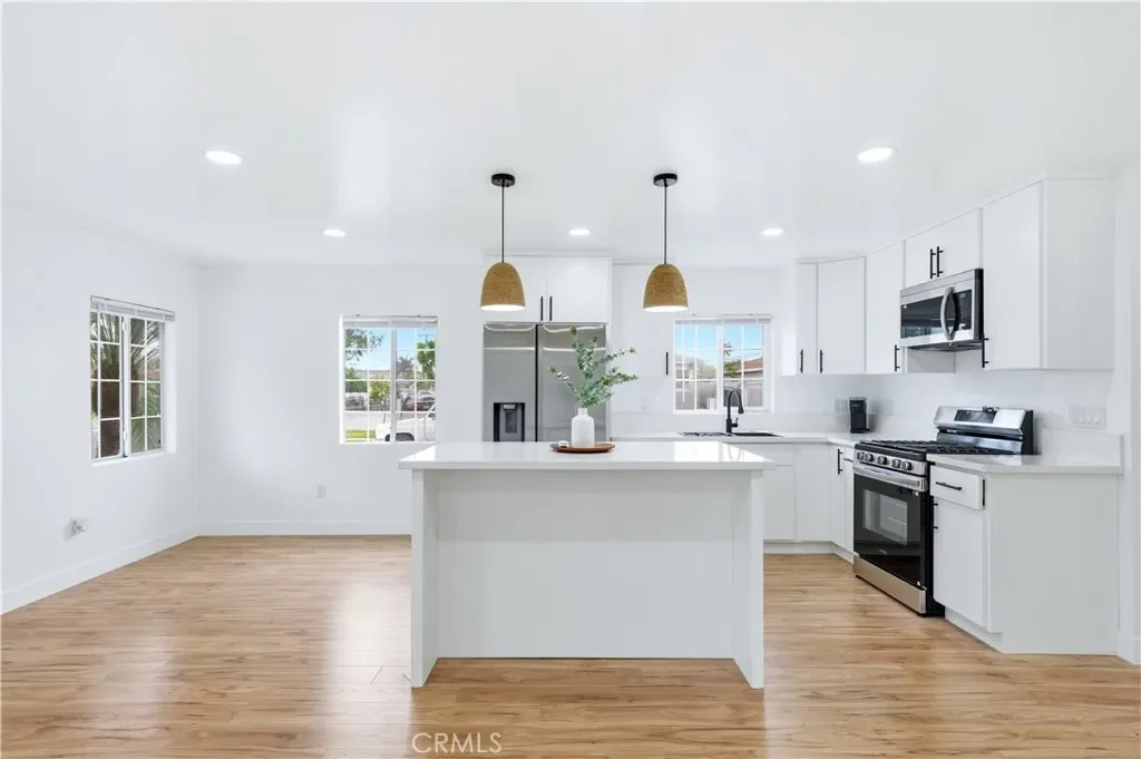 Beautifully remodeled 2 bedroom / 1 bathroom, corner-lot home offering modern upgrades, flexible living space, and a move-in ready experience. This updated home features new flooring, fresh interior and exterior paint, and a bright, open feel throughout. The remodeled kitchen is designed for both style and function, opening to the main living area for seamless everyday living and entertaining. Bedrooms are comfortably sized with clean finishes, mirrored closet doors, and updated lighting. The fully remodeled hall bathroom showcases contemporary tile work, a sleek vanity, matte black fixtures, and a tub with built-in niche and window for natural light. Additional upgrades include a new roof, and an energy-efficient ductless mini-split system for heating and cooling. Low-maintenance backyard ideal for outdoor seating, pets, or light gardening. The property also includes a one-car attached garage with laundry hookups. Located near schools, shopping, dining, and major freeways, this home is ideal for buyers seeking a turnkey property with modern upgrades and long-term potential. Potential down payment assistance programs may be available; buyers to verify eligibility.