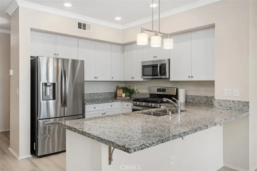The stylish kitchen features granite countertops, ample cabinetry, and a functional layout perfect for both everyday cooking and entertaining. Each of the three bathrooms has been elevated with quartz countertops, adding a touch of elegance and durability.