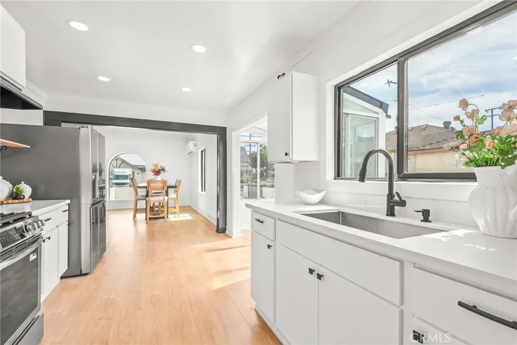 1927 Spanish Style Home that has gone under beautiful modern renovations in Bellflower. This 2-bedroom, 1-bathroom Spanish-style home offers a great opportunity for ownership in the bustling, and growing City of Bellflower. With its classic 1927 character, this property is perfect for a buyer who appreciates gorgeous timeless architecture, and the charm of the home. Sitting on a generous 6,000+ sq. ft. lot, the home features a long driveway secured with an iron gate—ideal for RV parking, multiple cars, boats, etc. , which is a rare find in this area. Inside, the spacious living room flows seamlessly into the dining room, conveniently located just off the kitchen. Adding to the home’s versatility is a “guest room” located off the garage, complete with a newly renovated area and a 3/4 bathroom—perfect for an older child, extended family member, or guest space. With its excellent location in a desirable Bellflower neighborhood, this property is a true diamond in the rough. Don’t miss the chance to make this house your new home!